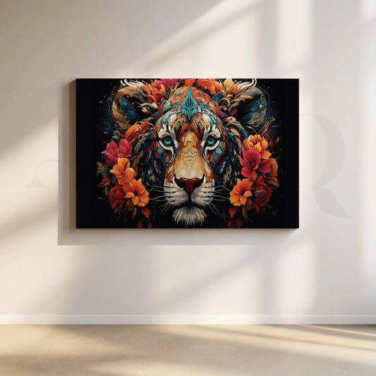 Unveiling a captivating paradox, our AI-generated canvas art features a majestic tiger resting amidst a...