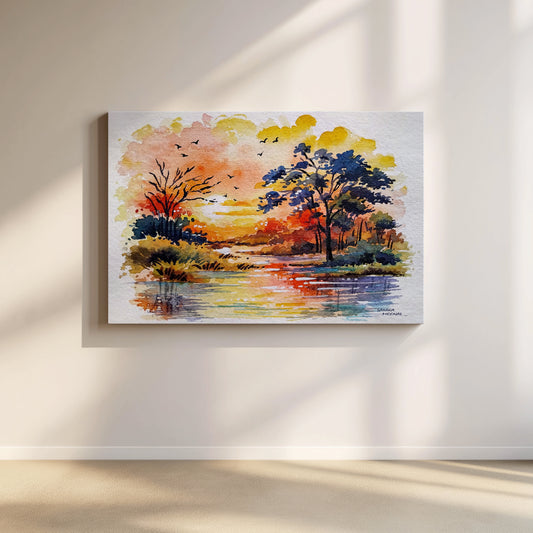 Grace your walls with this vibrant imaginary sunset landscape and get mesmerized with itscheer, joy...