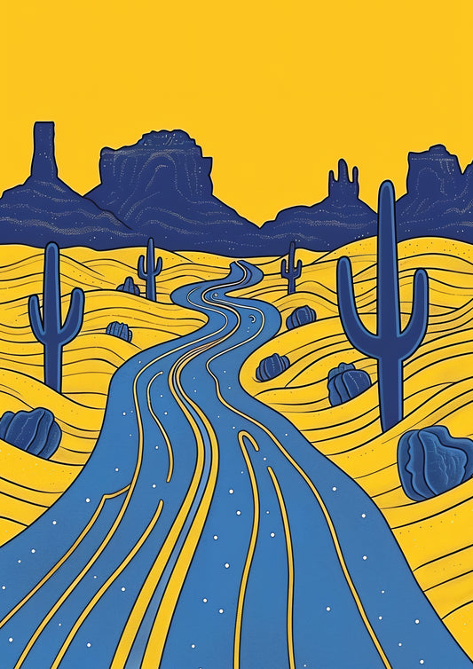 The Vivid Desert Bohemian Wall Poster showcases a mesmerizing desert landscape in bold shades of...