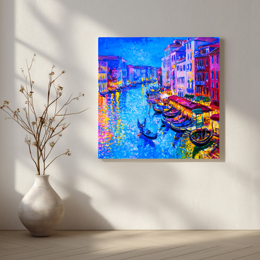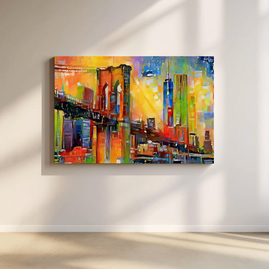 Urban skylines, streets, and architectural moments—day and night—created by licensed artists and produced on demand in India.