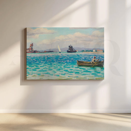 Archival Giclée pigments for rich blues and sandy neutrals, Hahnemühle canvas for texture, tight stretching on teak wood bars, optional premium polystyrene frames with rust-free hardware—arrives ready to hang in branded, gift-ready packaging.