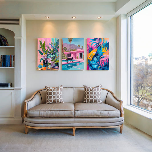Anciq ‘Miami Tropic Dreams’ Gallery Wall brings vacation vibes home with lush tropical leaves, a...