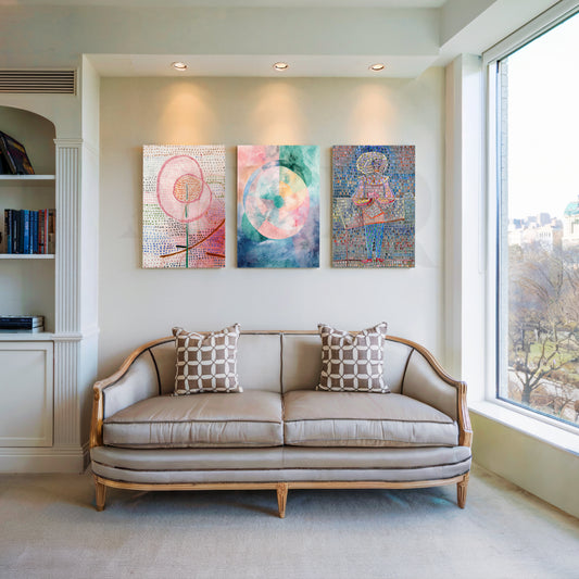 Anciq ‘Pastel Mosaic Dreams’ Gallery Wall blends soft florals, dreamy circular abstracts, and intricate mosaic-style...