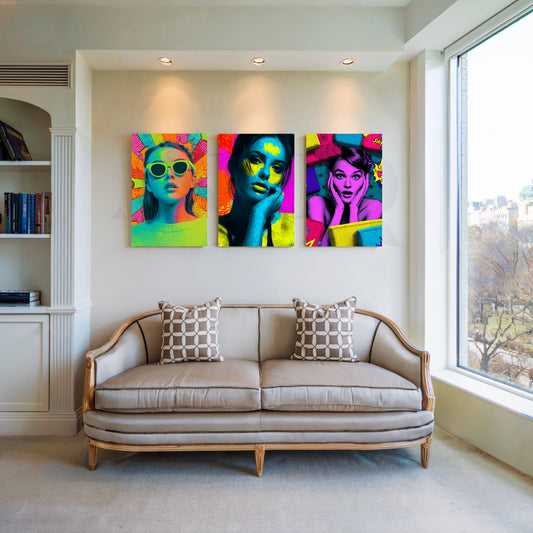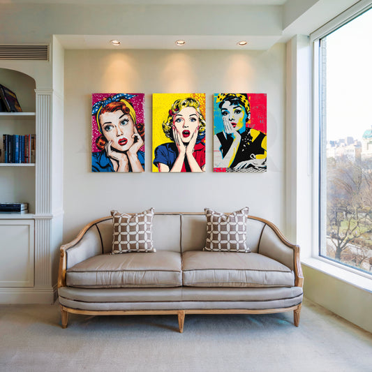 Anciq ‘Bubblegum Pop Trio’ Gallery Wall brings bold comic-book energy to your space, featuring three...
