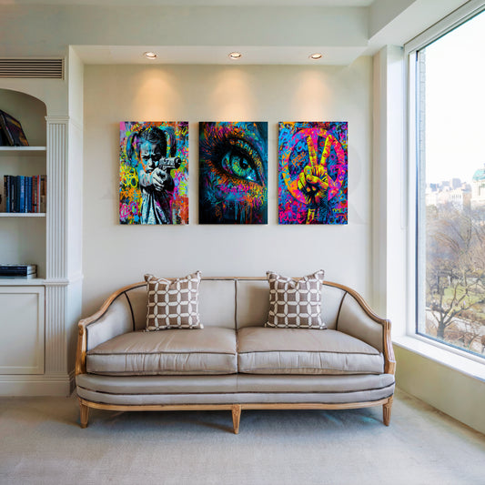 Anciq ‘Street Vision Pop Art’ Gallery Wall blends edgy graffiti style with bold symbolism—a defiant...