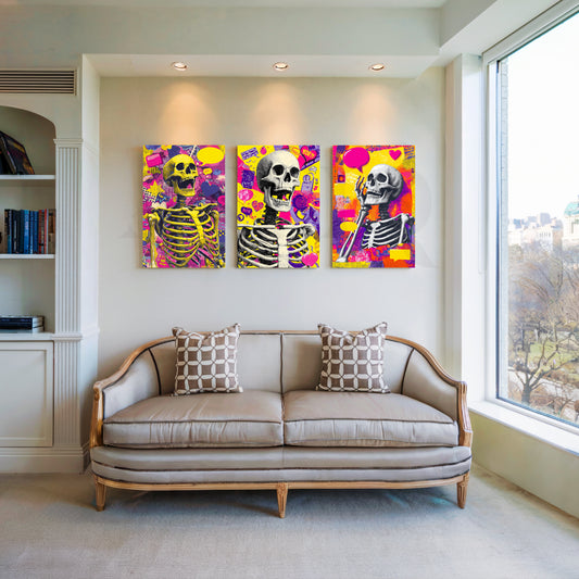 Anciq ‘Neon Skull Pop Trio’ Gallery Wall brings an edgy, graffiti-inspired pop art vibe to...