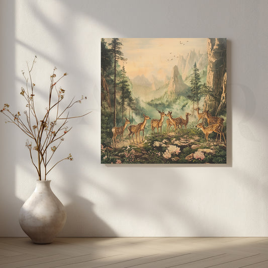 Bring forest serenity into your home with this scenic canvas artwork featuring a graceful group...