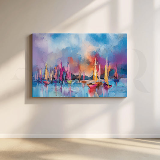 Originals, canvas prints, and posters. Canvas pieces come tightly stretched on sturdy wooden bars; framed variants use lightweight premium polystyrene with rust-free hardware.