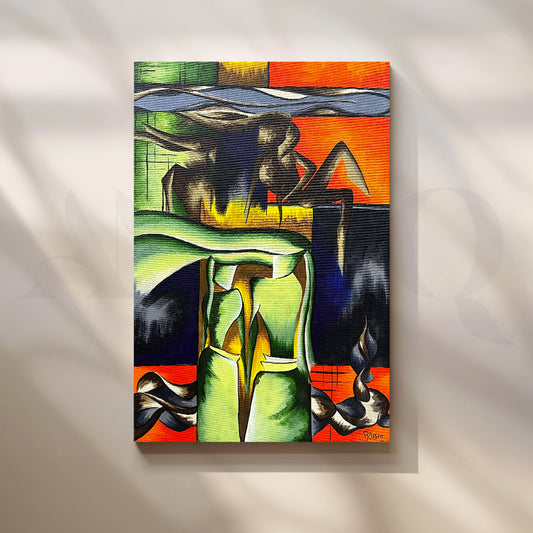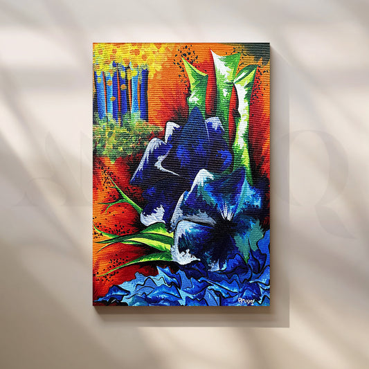 Embossed, acrylic art on canvas. The painting features bright yet soothing colours with falling petals,...