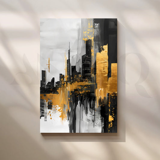Make an unforgettable first impression with “Golden Metropolis,” a dramatic abstract skyline rendered in matte...