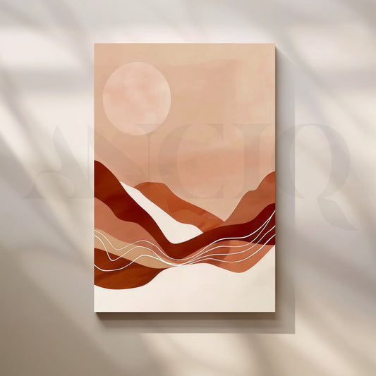 Earthy terracottas, clay pinks, and warm neutrals flow across “Sienna Dunes,” a modern abstract landscape...