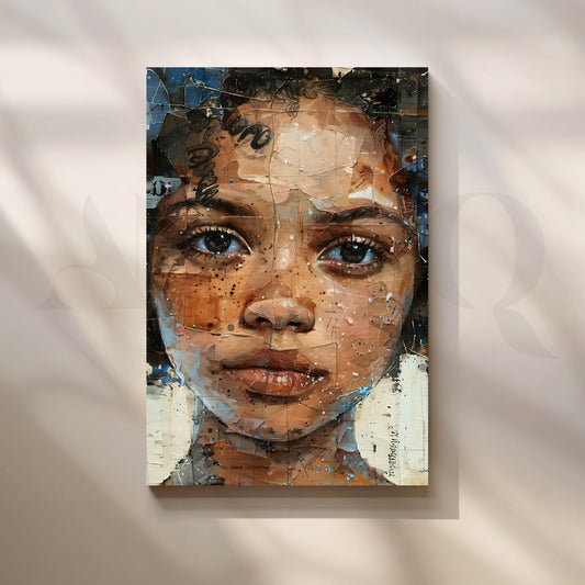 Emotion and texture meet in Mosaic Eyes, a mixed-media portrait built from layered collage marks...