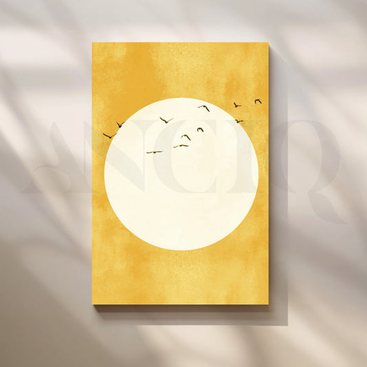 Anciq ‘Golden Horizon’ Canvas Painting brings warmth with its radiant sun orb and flying birds...