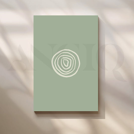 Anciq ‘Center of Calm’ Canvas Painting features hand-drawn concentric rings on a sage green background,...