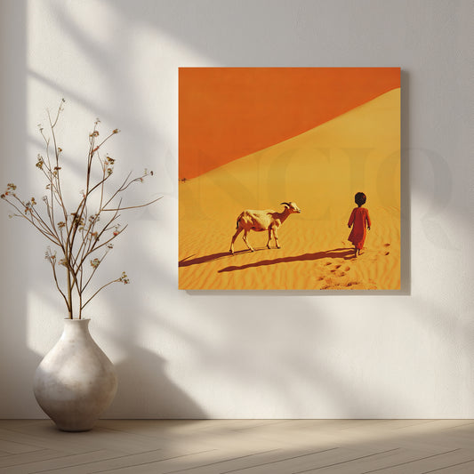 Art inspired by Rajasthan’s visual heritage—miniatures, palace jharokhas, deserts, and folk motifs—created by licensed artists and produced made-to-order in India.