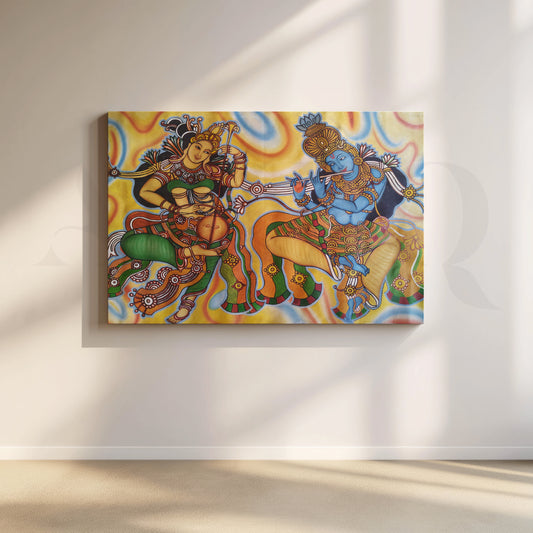 The holy love of Krishna and Radha is the most emotionally and spiritually deep romance in Indian mythology. This enduring connection—an expression of devotion, desire, and the mystical union of the soul with the supreme—is captured in our Krishna-Radha paintings.