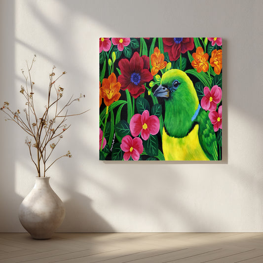 The painting celebrates the flourishing Summer season with bright blooms and season's most striking beauties...