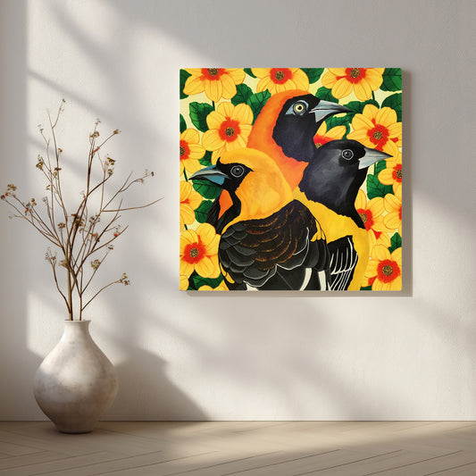 This work displays a dazzling beauty and daffodils that welcome the season of new beginnings...