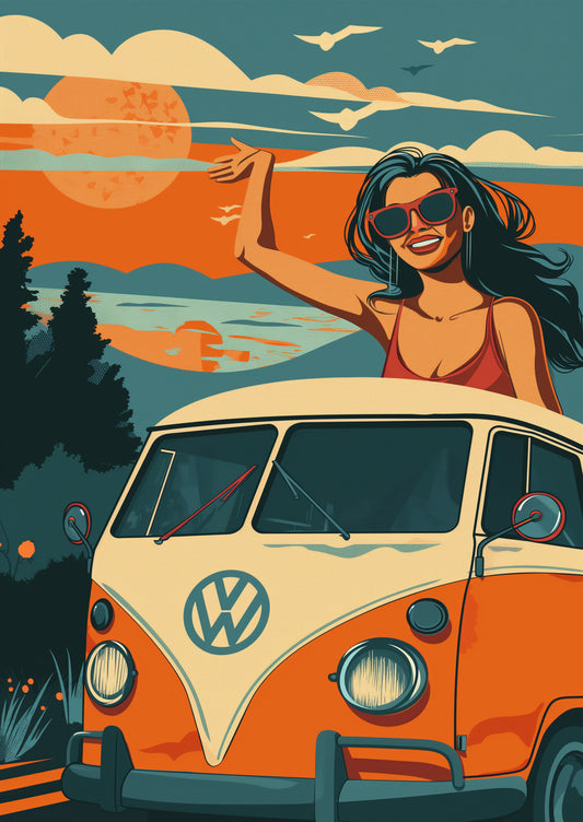 The Sunset Adventure Wall Poster showcases a vibrant depiction of joy and freedom. A cheerful...