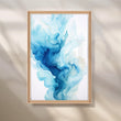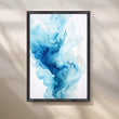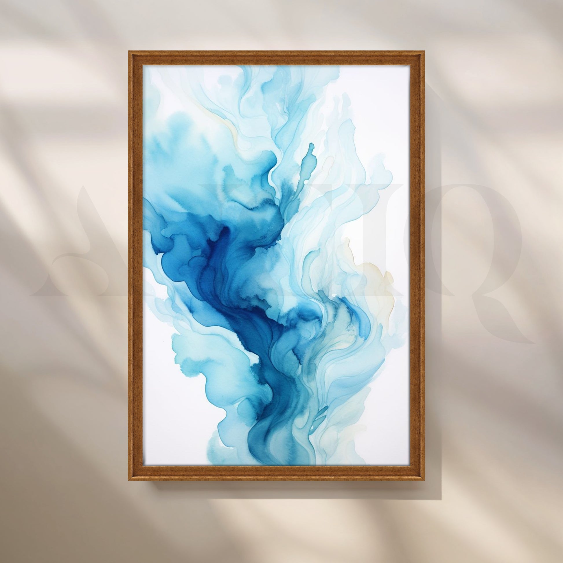 An abstract canvas depicting fluid blue and white waves in a soothing watercolor style. This calming piece infuses bedrooms and spa-like bathrooms with tranquility and ocean-inspired calm. Keywords: abstract blue painting, blue wall art, watercolor canvas print, ocean waves art, calming bedroom decor, bathroom wall art, modern home decor.
