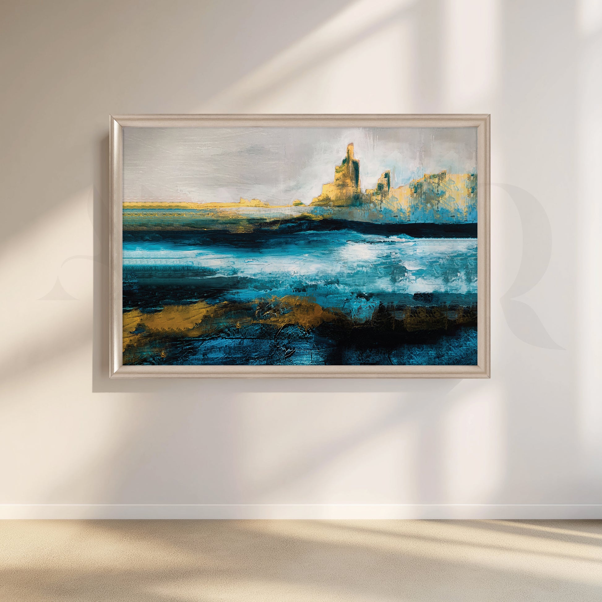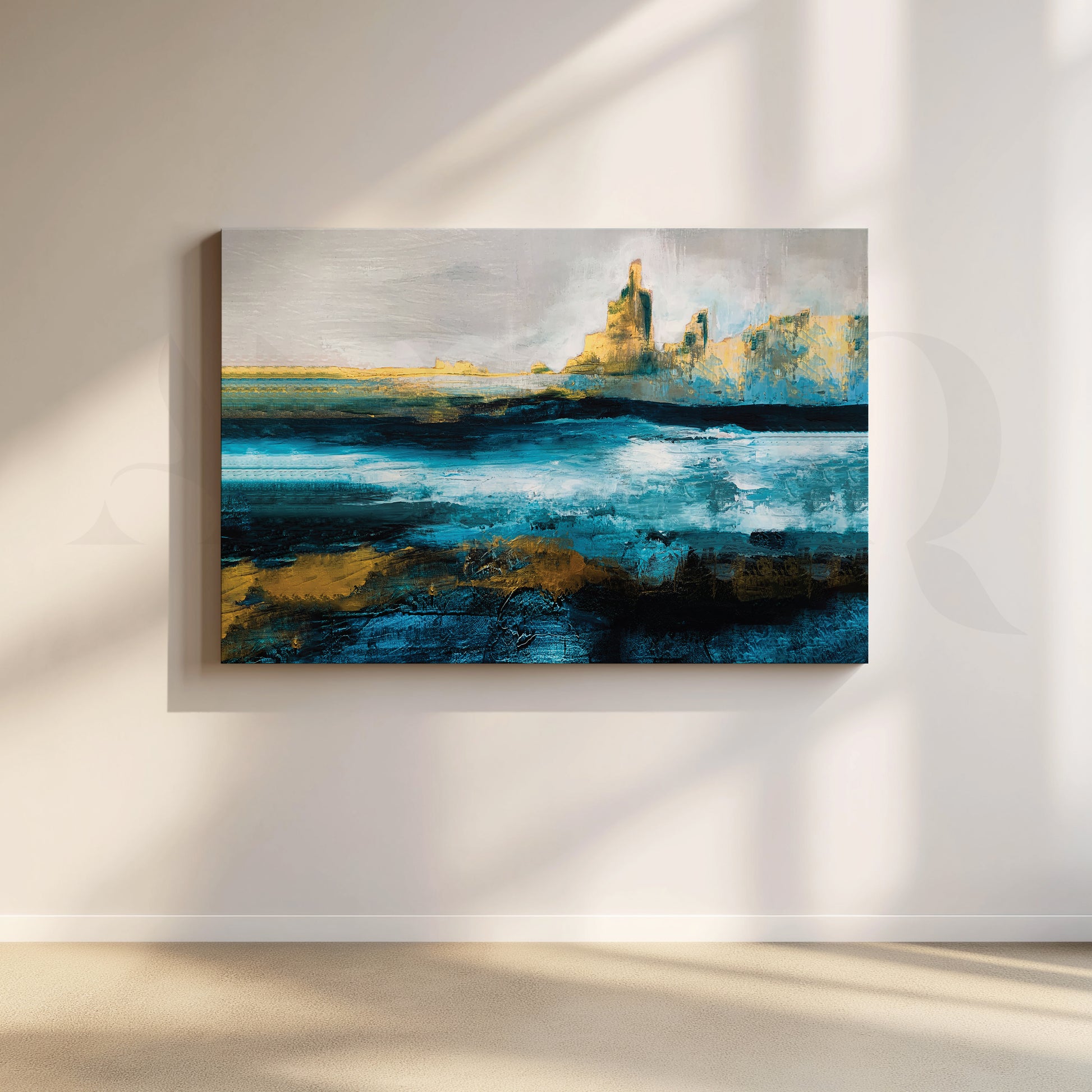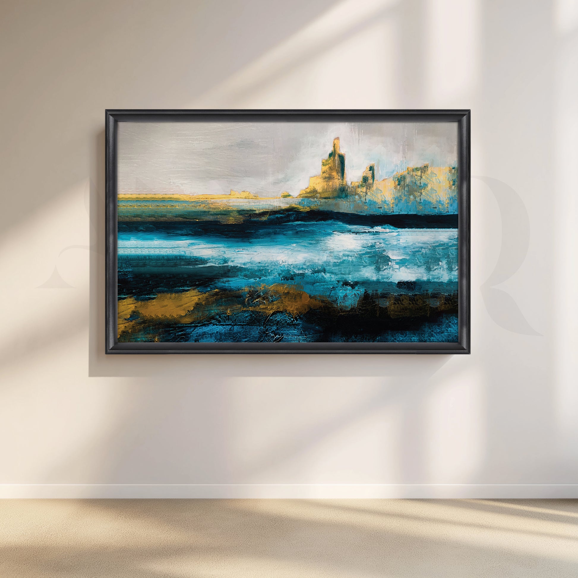 The Abstract Realms of the Mind Canvas Wall Painting is a vibrant abstract artwork that captures the imagination. The painting features a mix of swirling blues, greens, and golds that create a sense of movement and energy. The high-quality canvas and inks ensure that the colors will remain bright and vivid for years to come. The painting is also framed, making it easy to hang and display in your home or office.