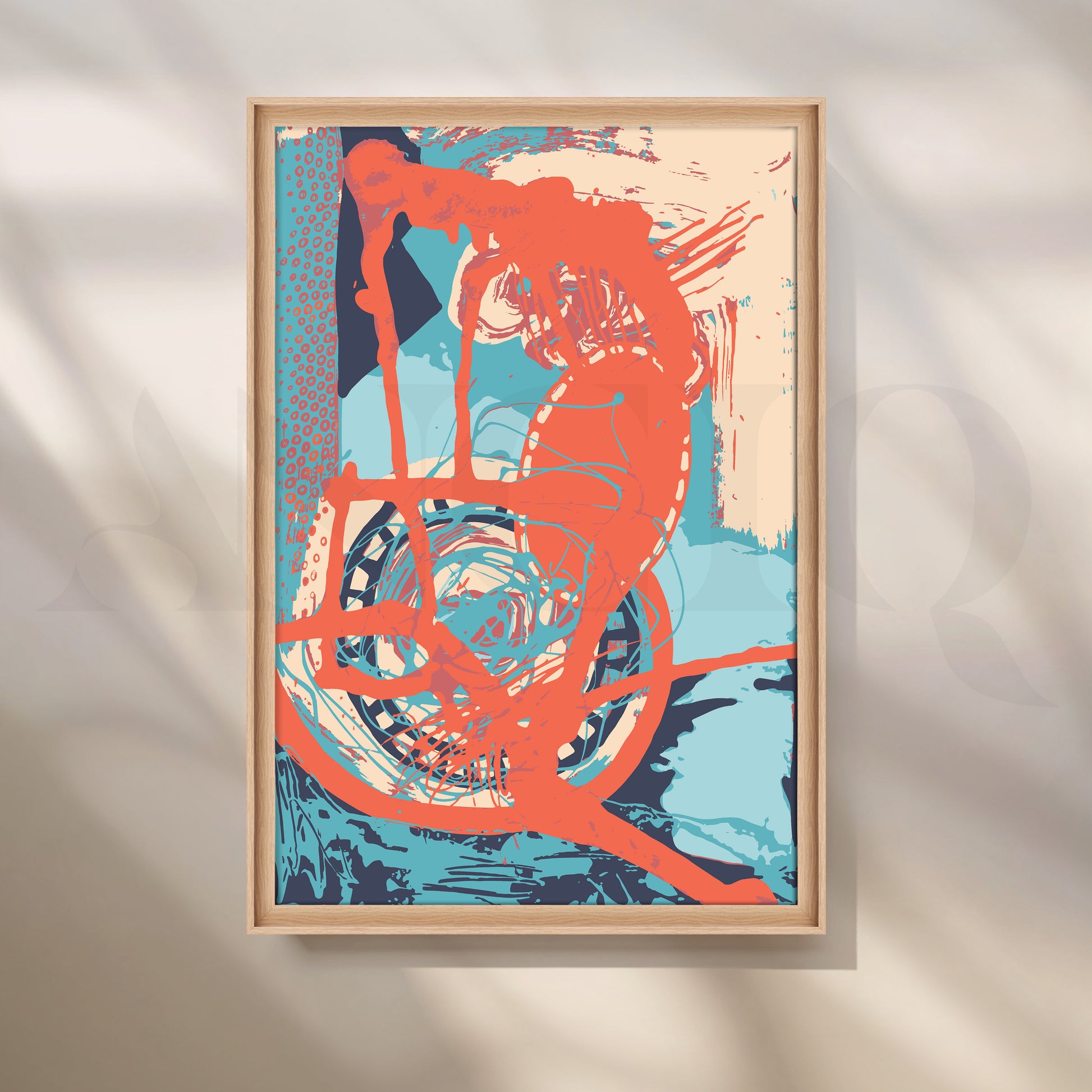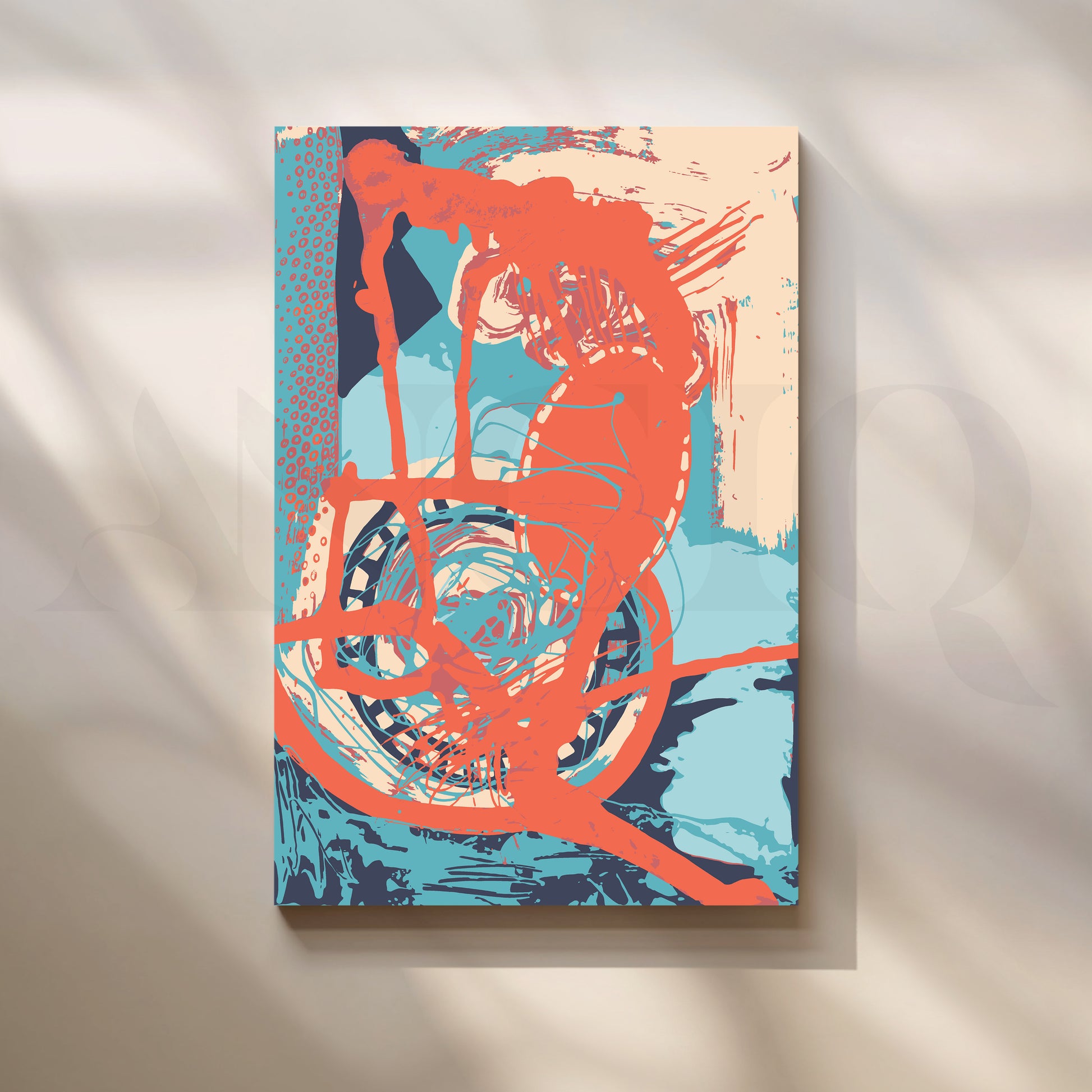 Dive into a dynamic fusion of bold red strokes and cool blue tones with this abstract artwork. The chaotic yet mesmerizing design invites contemplation and adds an energetic flair to any modern space. Perfect for those who appreciate the unpredictable beauty of abstract art.