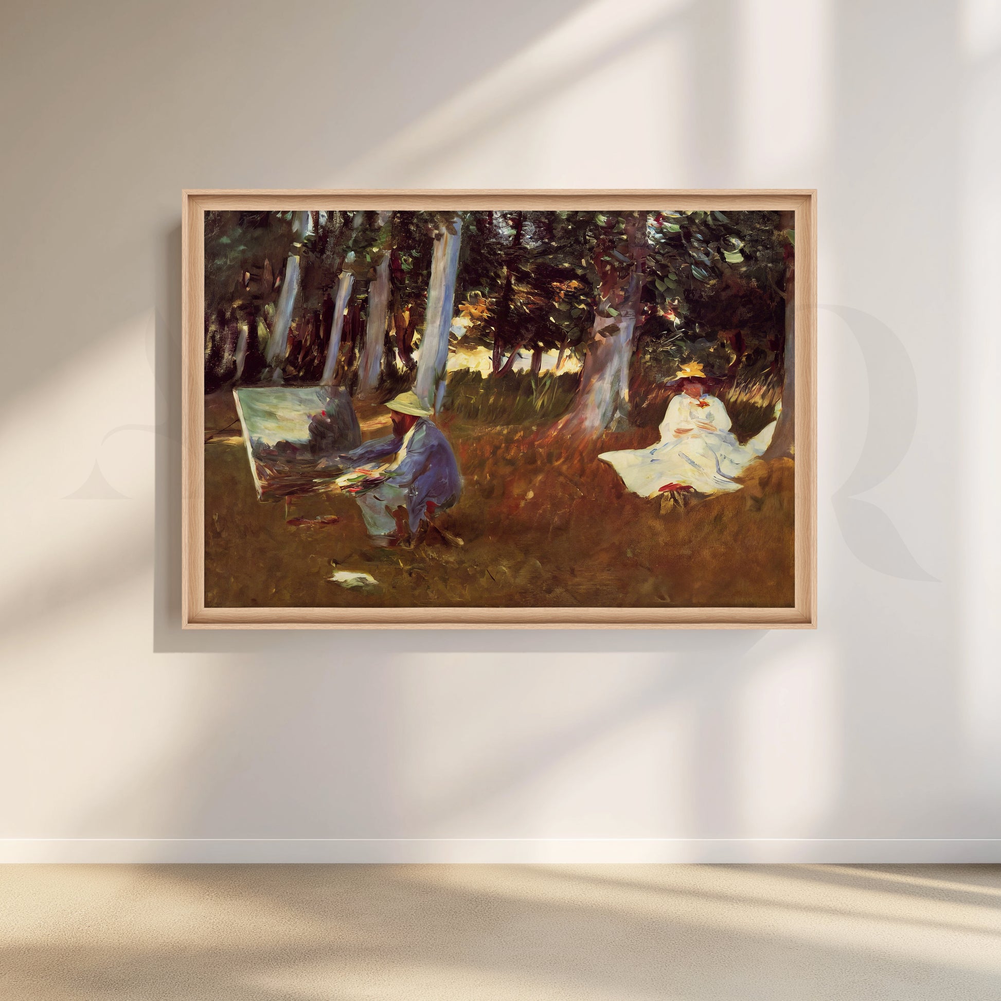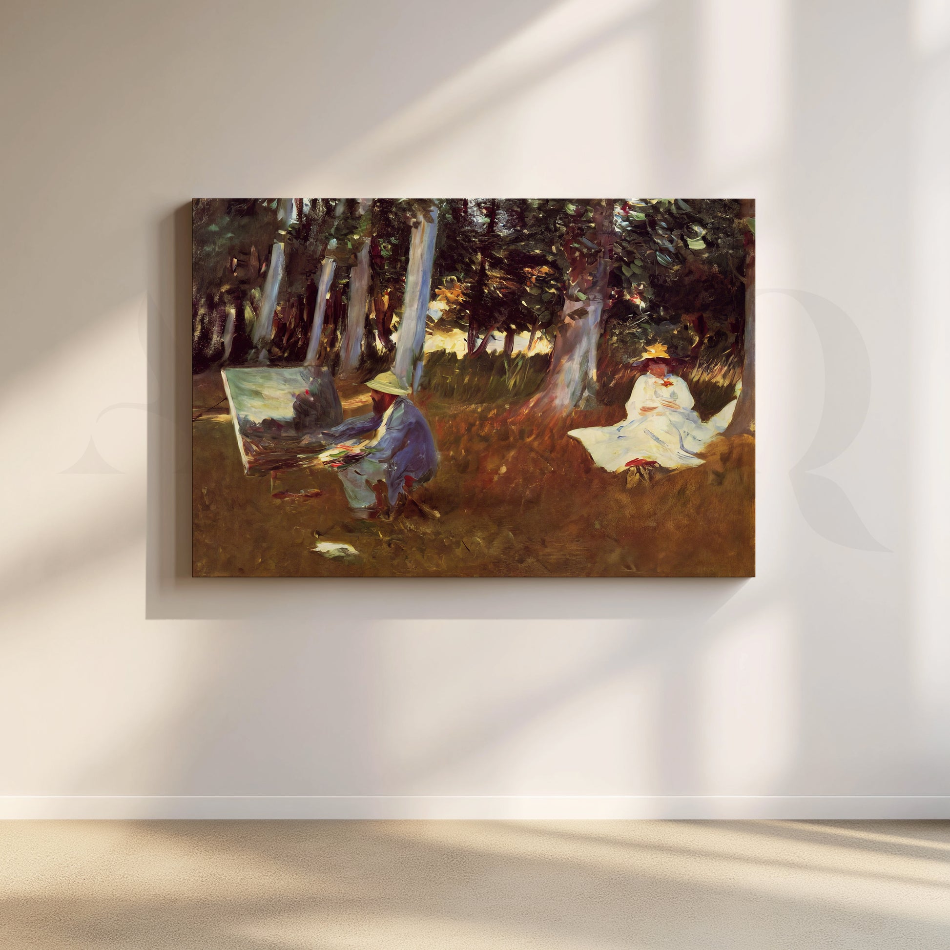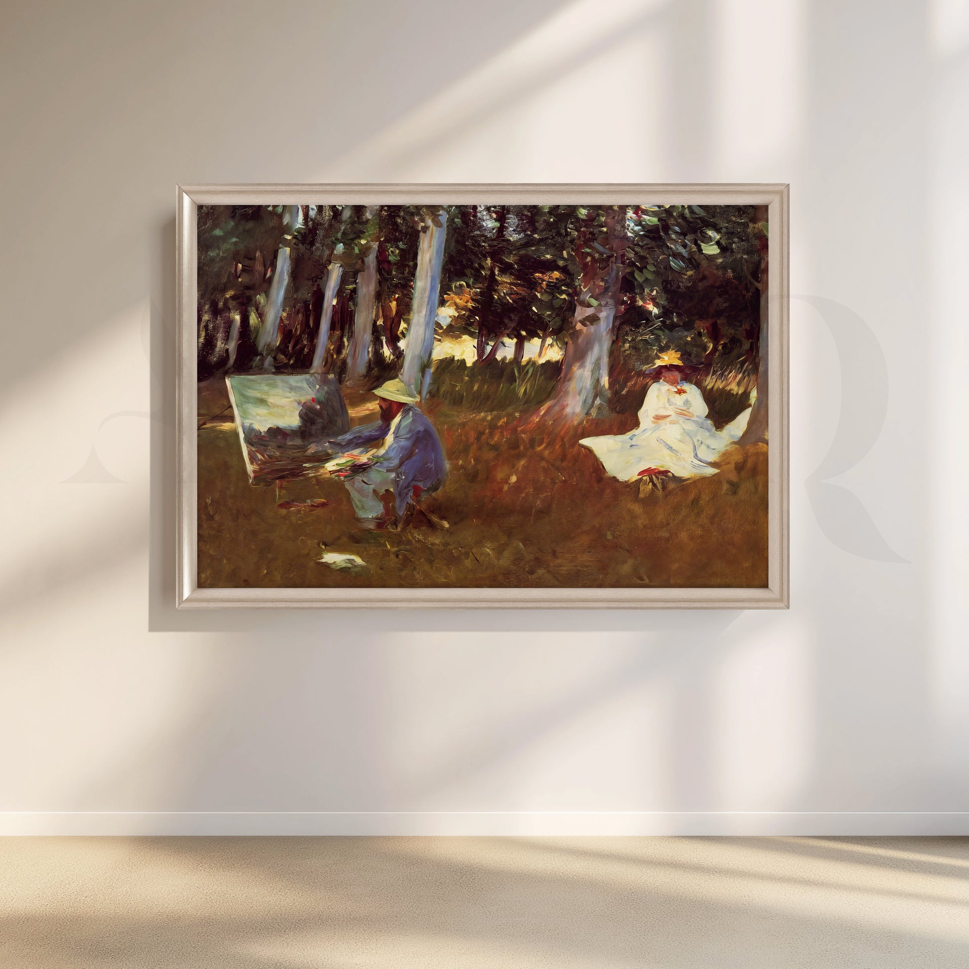 Celebrate creativity with this plein-air scene of an artist at work beneath sunlit trees, captured in expressive, earthy brushstrokes. The warm greens, ochres, and soft whites make versatile modern wall art for studios and home offices, inspiring focus without overwhelming the room. Hang this abstract-leaning impressionist canvas over a desk or bookshelf as refined office wall décor, or style it as gallery-wall friendly art for creative workspaces and study areas.