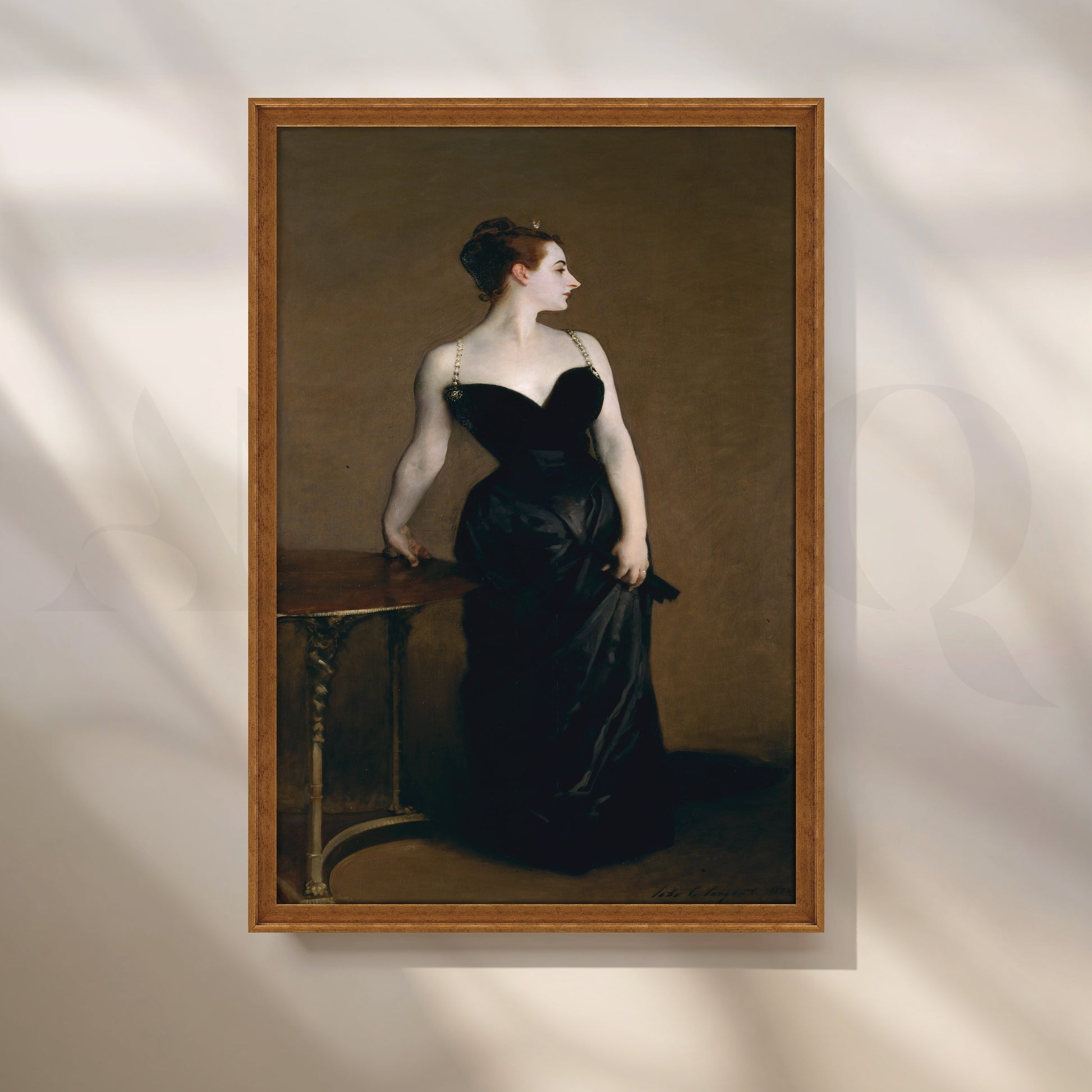 A striking figure in a sleek black evening gown anchors this timeless canvas, blending Old-World glamour with minimalist drama. Warm taupe background, sculptural highlights, and couture details make it a statement piece for formal dining rooms, entryways, and designer offices. Elevate your space with luxury wall art—perfect for classic interior styling, traditional home décor, and gallery-worthy modern wall art.