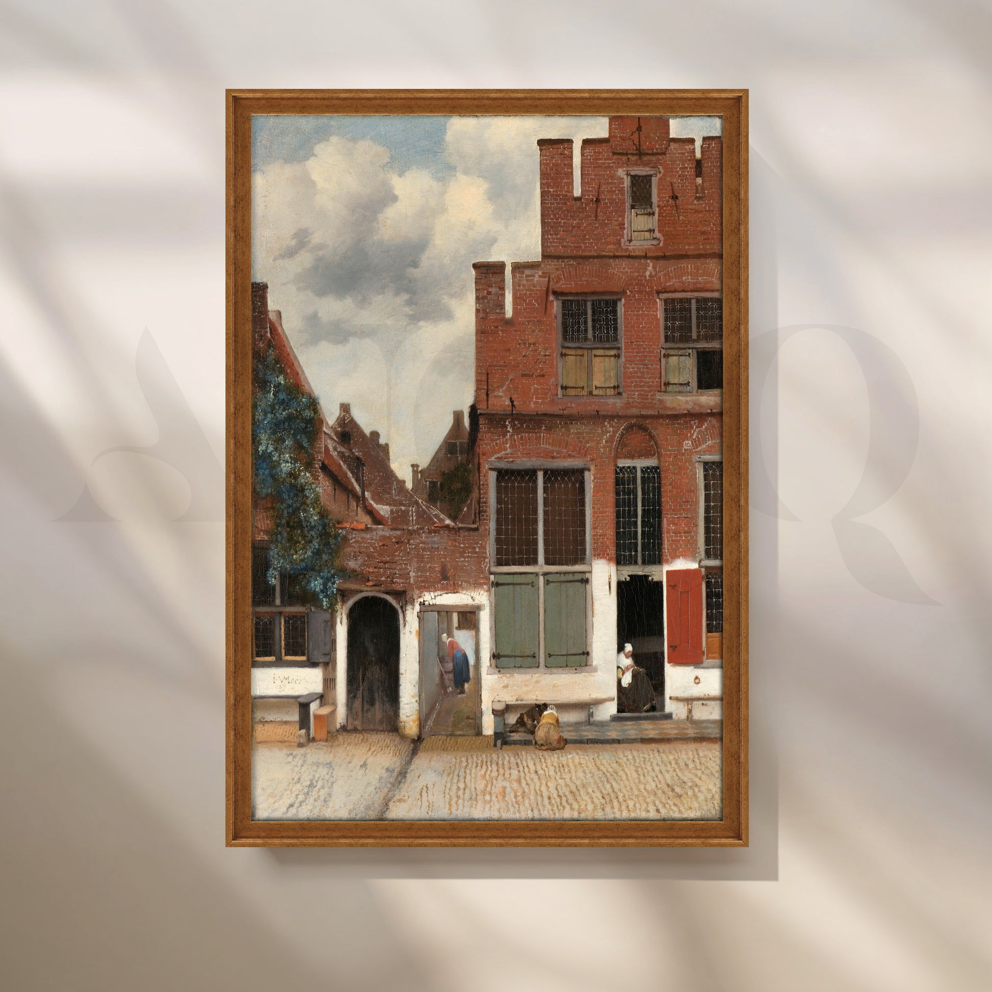 Bring Dutch Golden Age charm to your home with this museum-quality canvas of Vermeer’s The Little Street. Warm brick reds, soft sky blues, and creamy neutrals create a timeless, cozy scene—perfect as modern wall art for a kitchen, hallway, or entry. This classic art print adds vintage home décor appeal to a gallery wall, while its realistic brushwork delivers elevated yet subtle texture. Ideal as large living room art, farmhouse wall décor, or traditional canvas painting for everyday spaces.