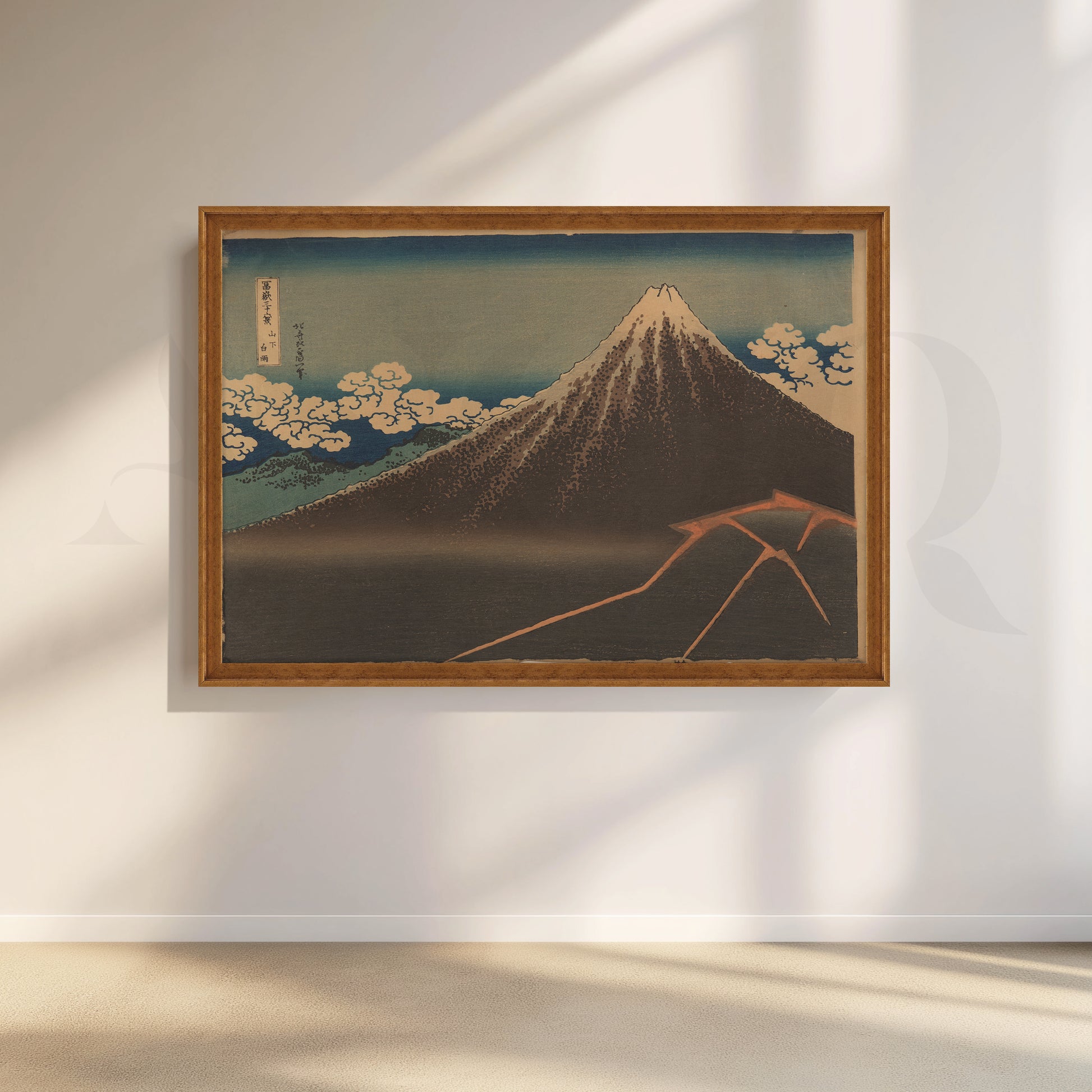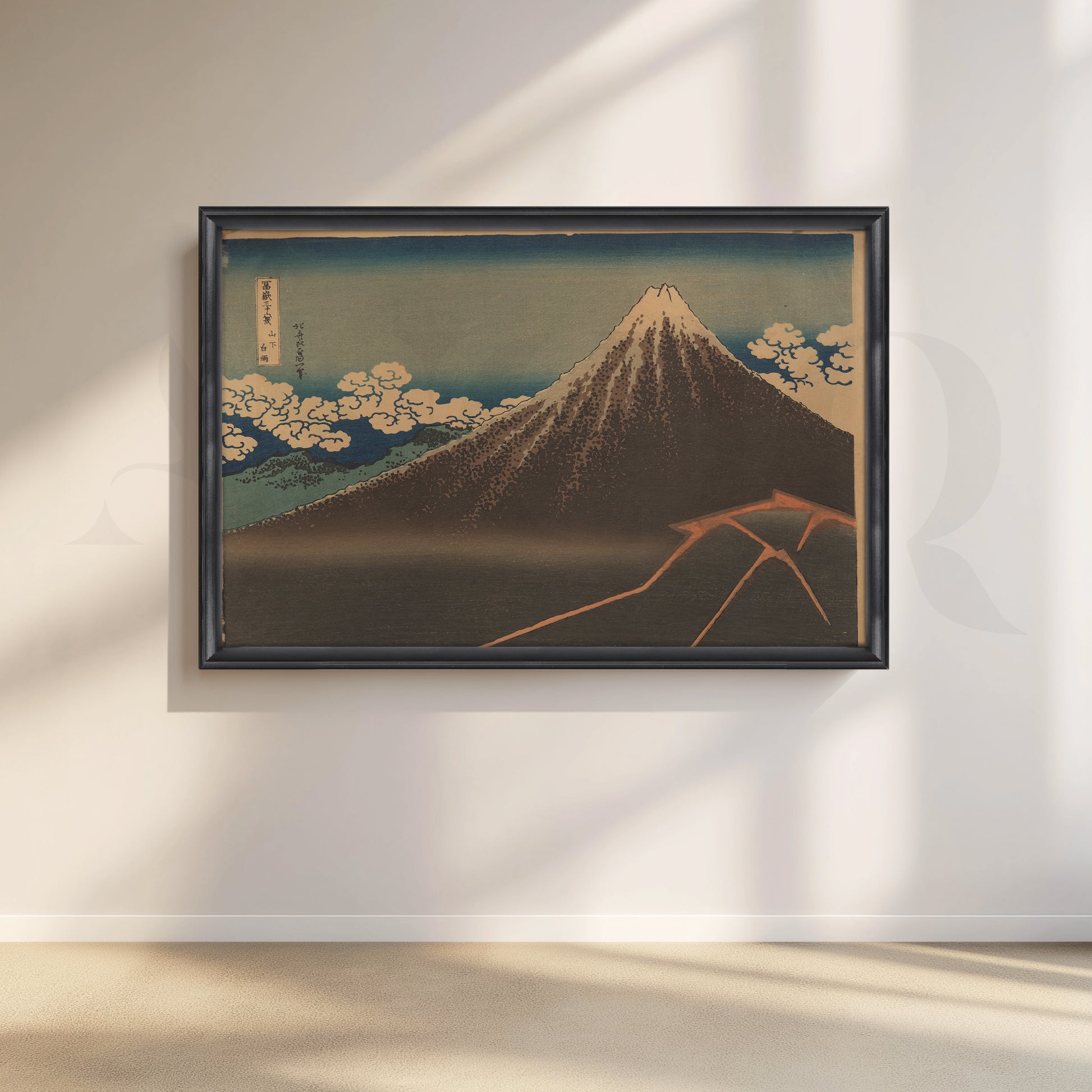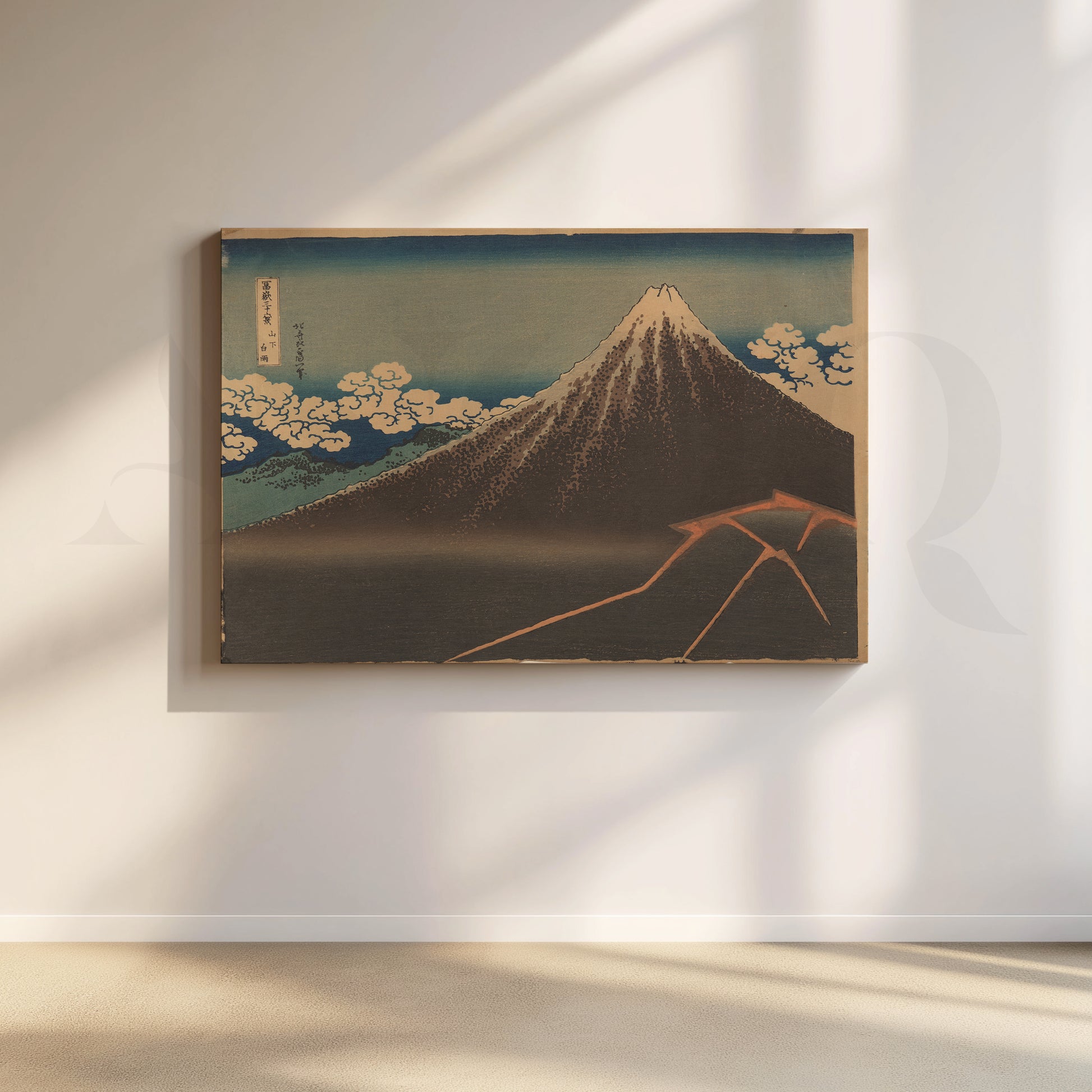 Channel timeless focus with Hokusai’s dramatic Mt. Fuji: storm clouds, inky slopes, and lightning-like ridgelines rendered in classic ukiyo-e tones of charcoal, teal, and sand. This museum-quality canvas brings Japanese art heritage into modern spaces—smart office wall art, refined library décor, or an elevated entryway focal point. A sophisticated alternative to abstract prints, it works with modern, wabi-sabi, and minimalist styles; great as large office wall art, zen study décor, or statement hallway canvas.