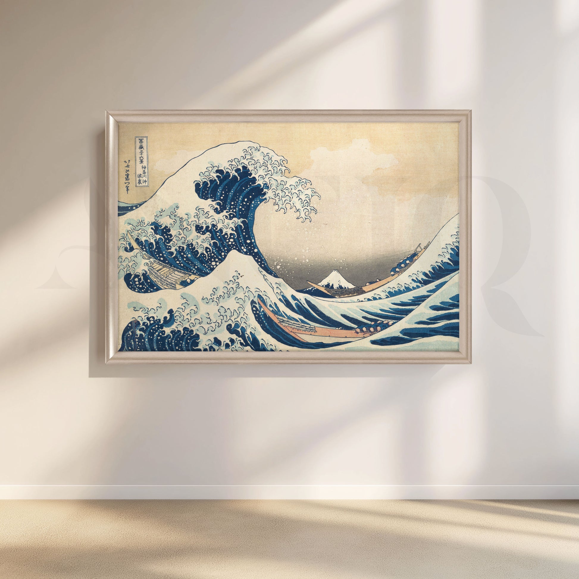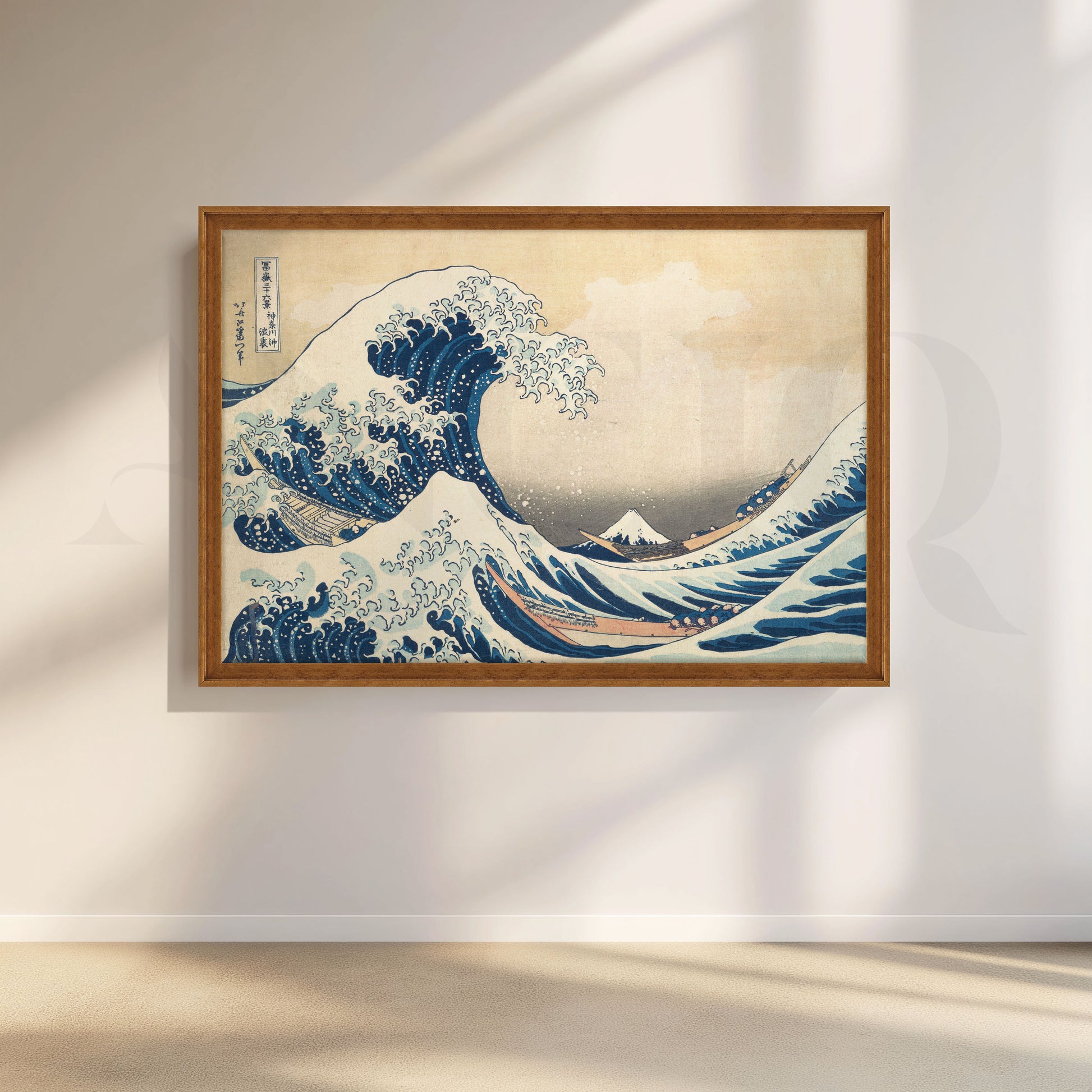 Hokusai’s iconic Great Wave—cresting indigo blues, crisp foam, and distant Mt. Fuji—arrives as premium canvas wall art that energizes any space. The bold blue-and-cream palette suits coastal, modern, and Japandi interiors, making an instant focal point above the sofa, mantel, or media console. Perfect for buyers searching modern wall art, Japanese canvas prints, large living room art, or coastal décor; this classic woodblock masterpiece adds movement, culture, and timeless style to your home.