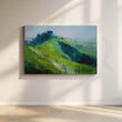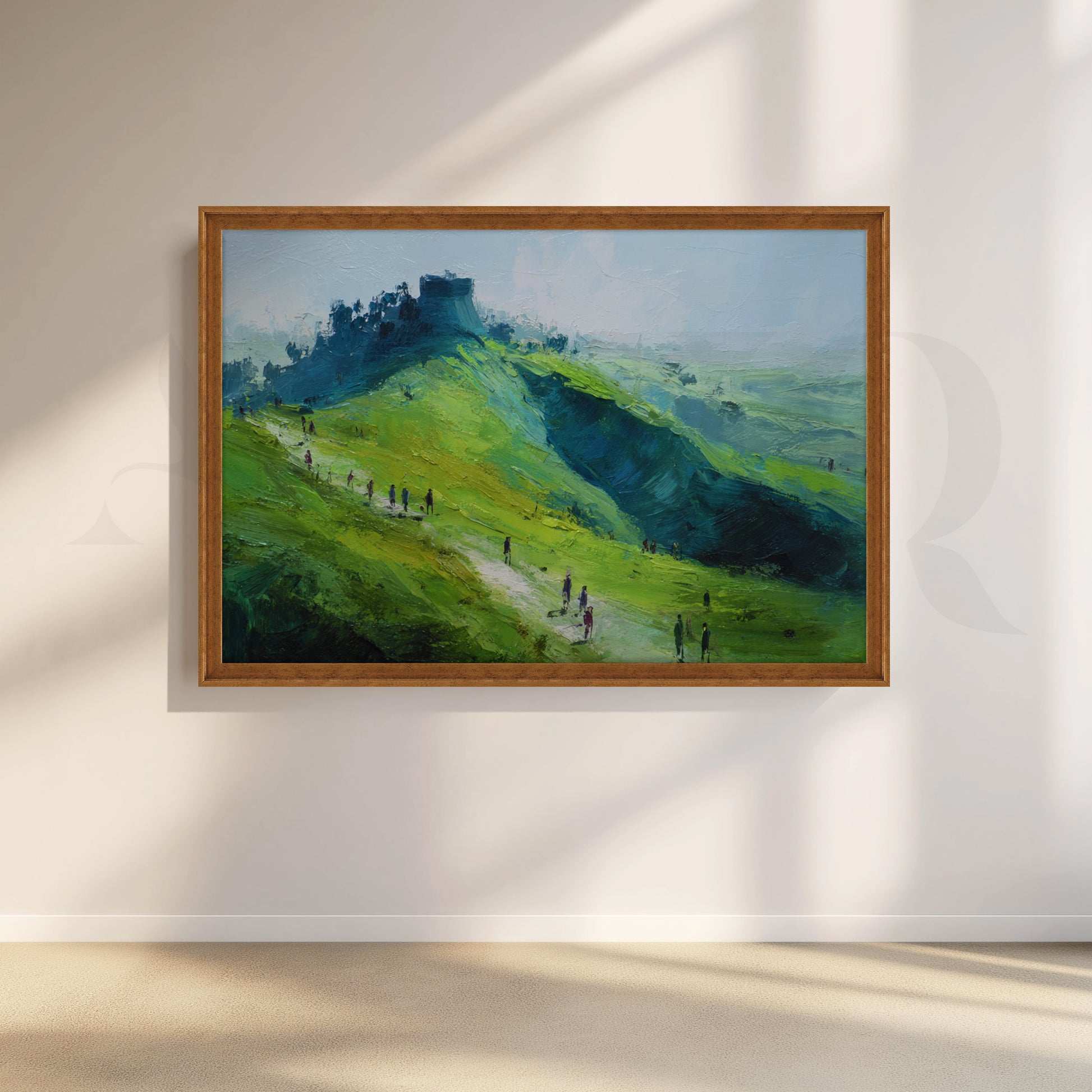Capture the freshness of open landscapes with Green Hills Journey Canvas Artwork. This vibrant piece portrays rolling green hills, distant forts, and peaceful travelers, symbolizing exploration and freedom. A perfect addition to nature-themed or minimalist wall décor collections.