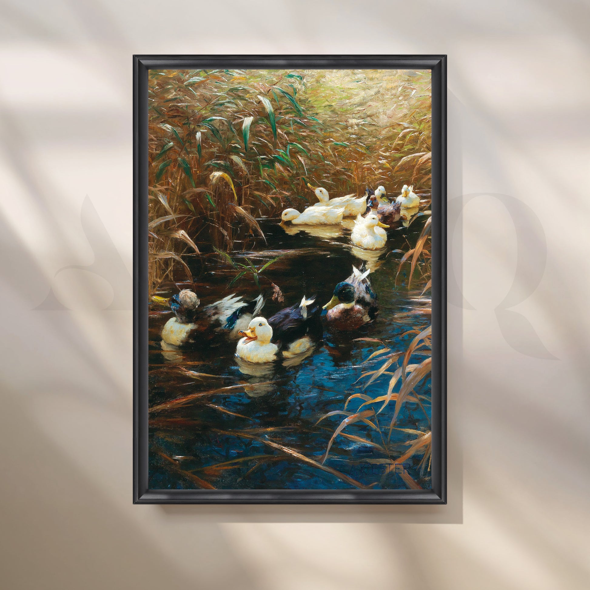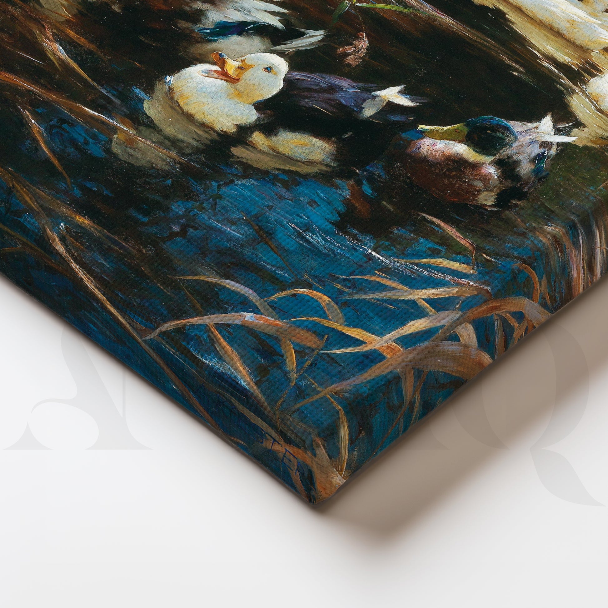 Ducks in Reeds Nature Canvas Painting for Dining Room