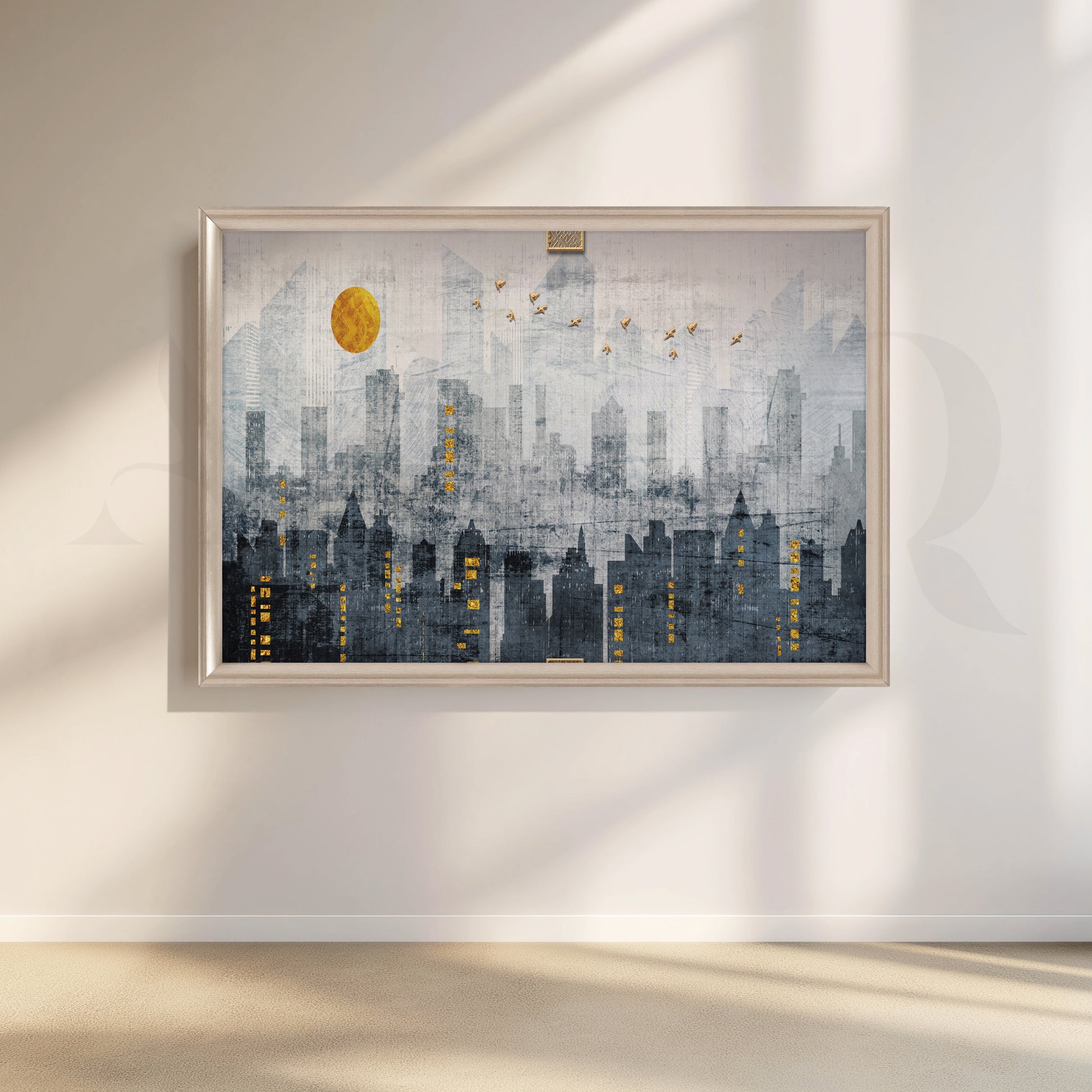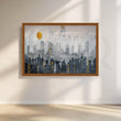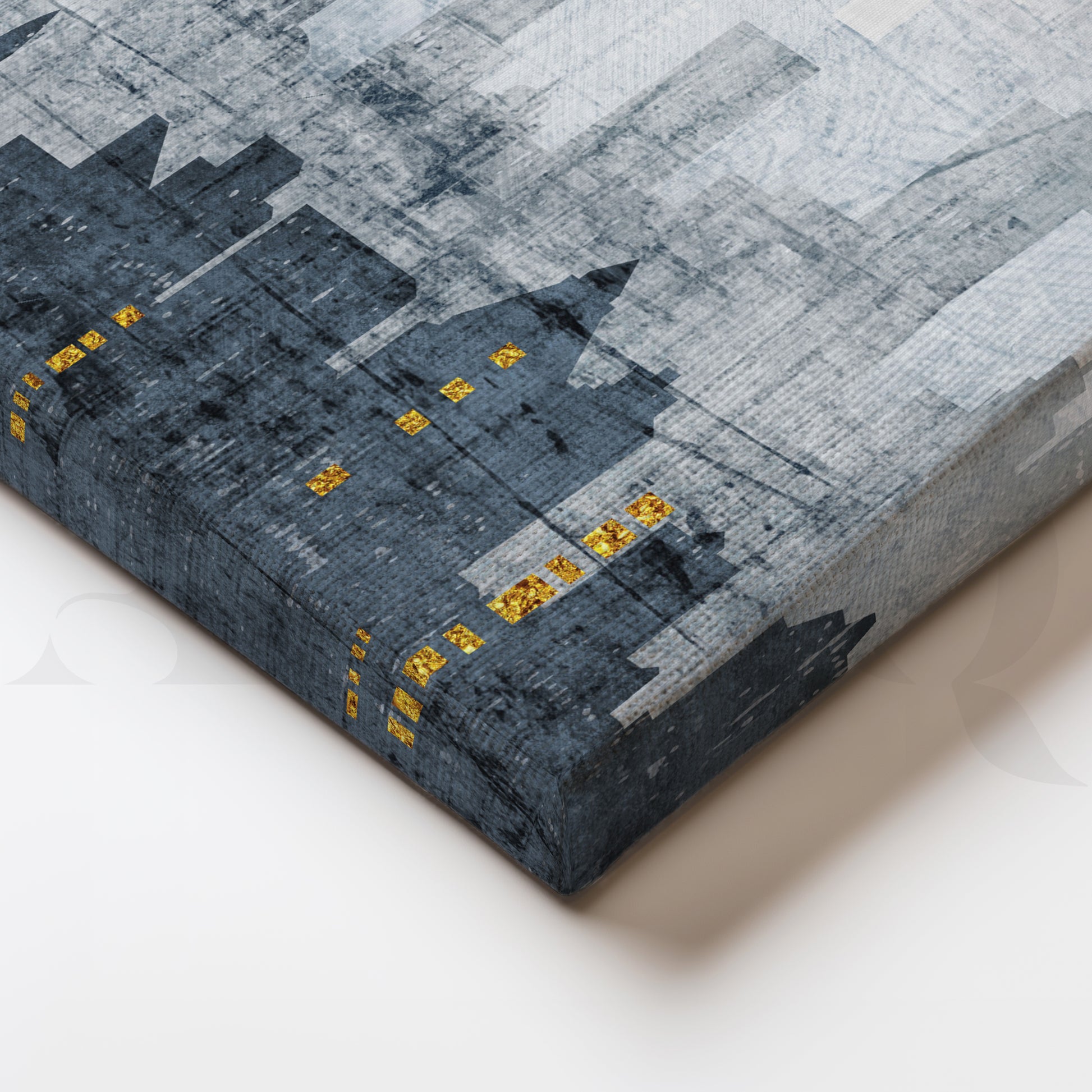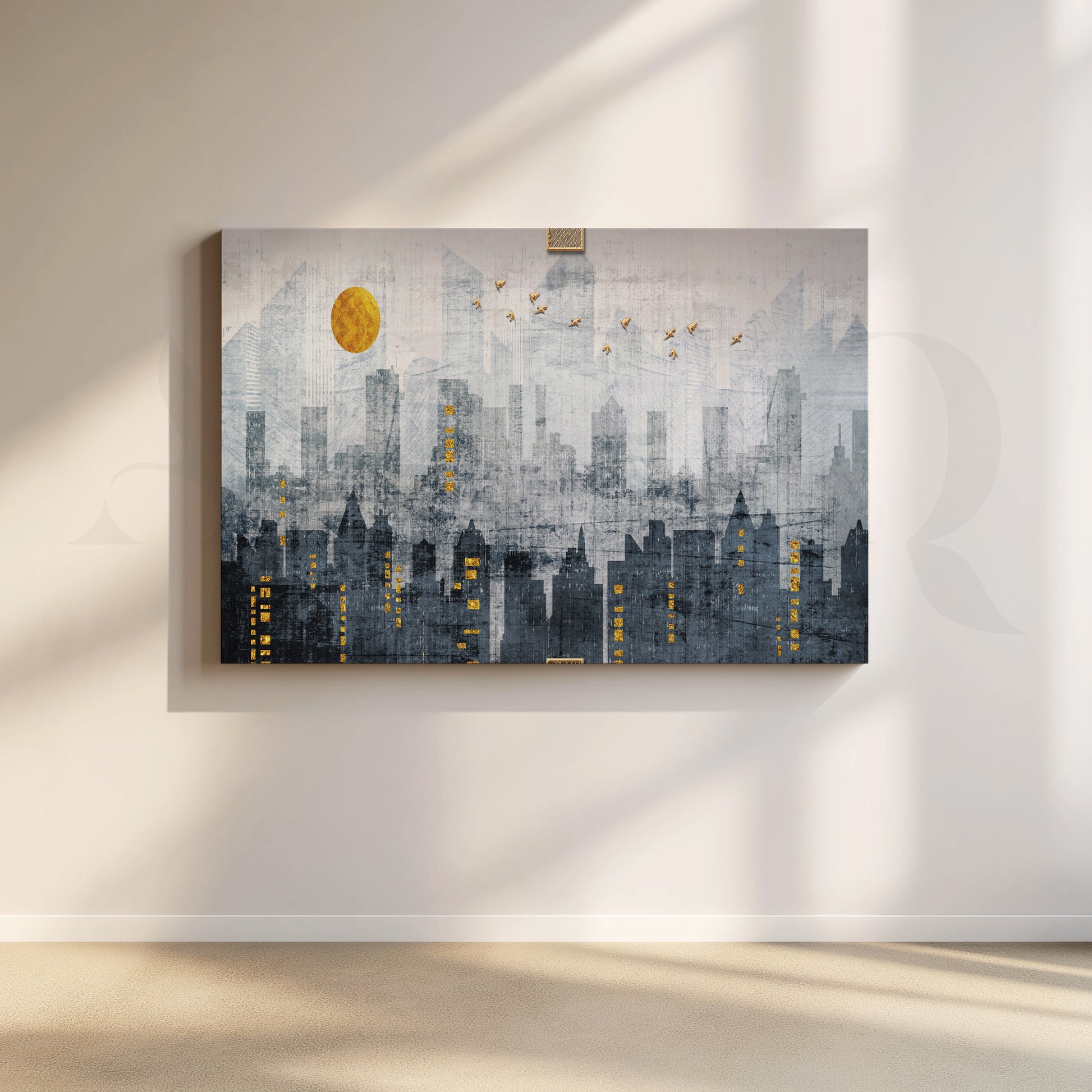 Architectural Aviary Canvas Wall Painting is actually an abstract city landscape painting. It features a metropolitan skyline in a hazy, dreamlike quality. The colors are muted grays and golds, giving the piece a sophisticated and modern feel. While the painting is to be a print canvas, the Architectural Aviary Canvas Wall Painting is described as being made from high-quality canvas material.