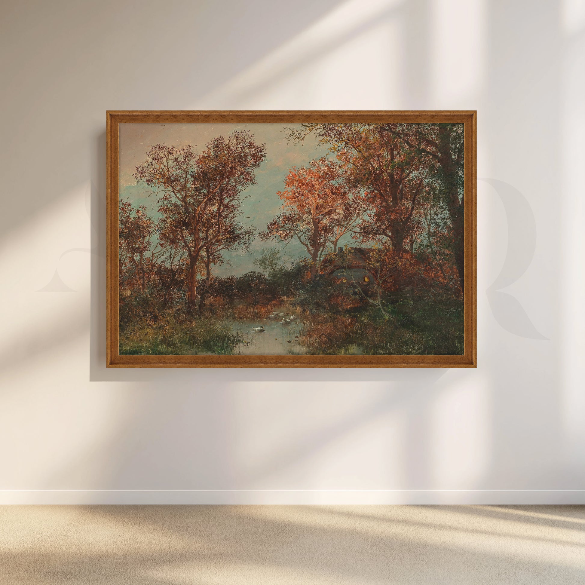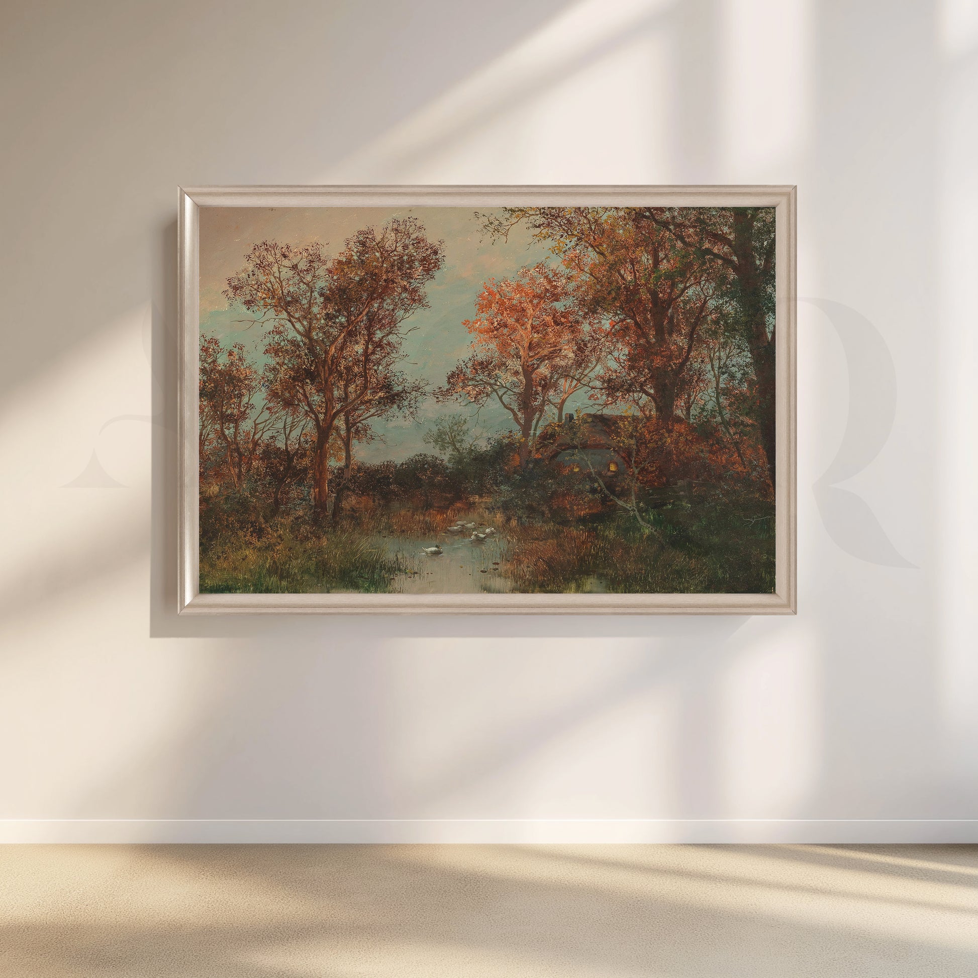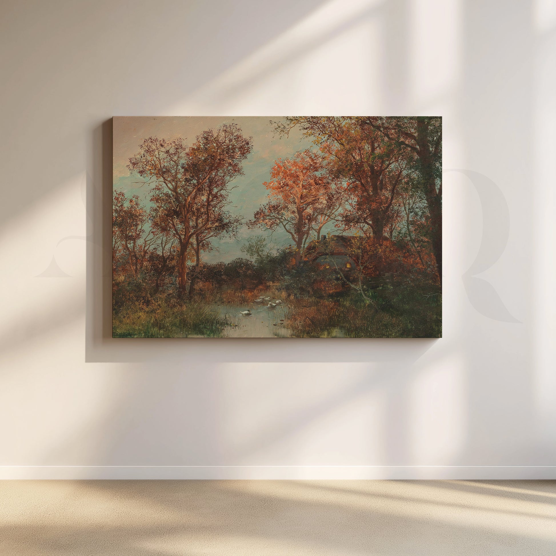 Green Bloom Trees Spring Landscape Floating Frame Landscape Canvas Wall Painting