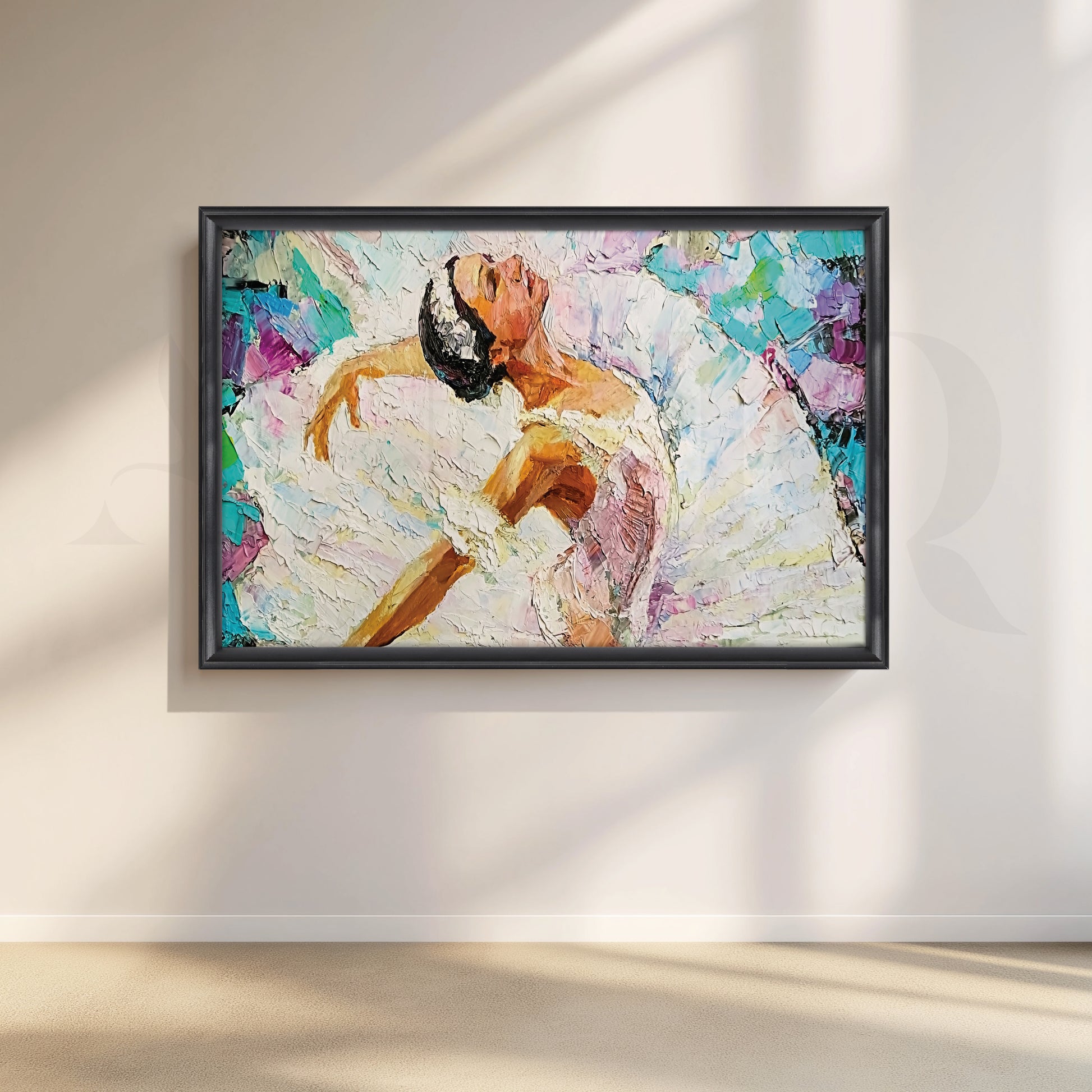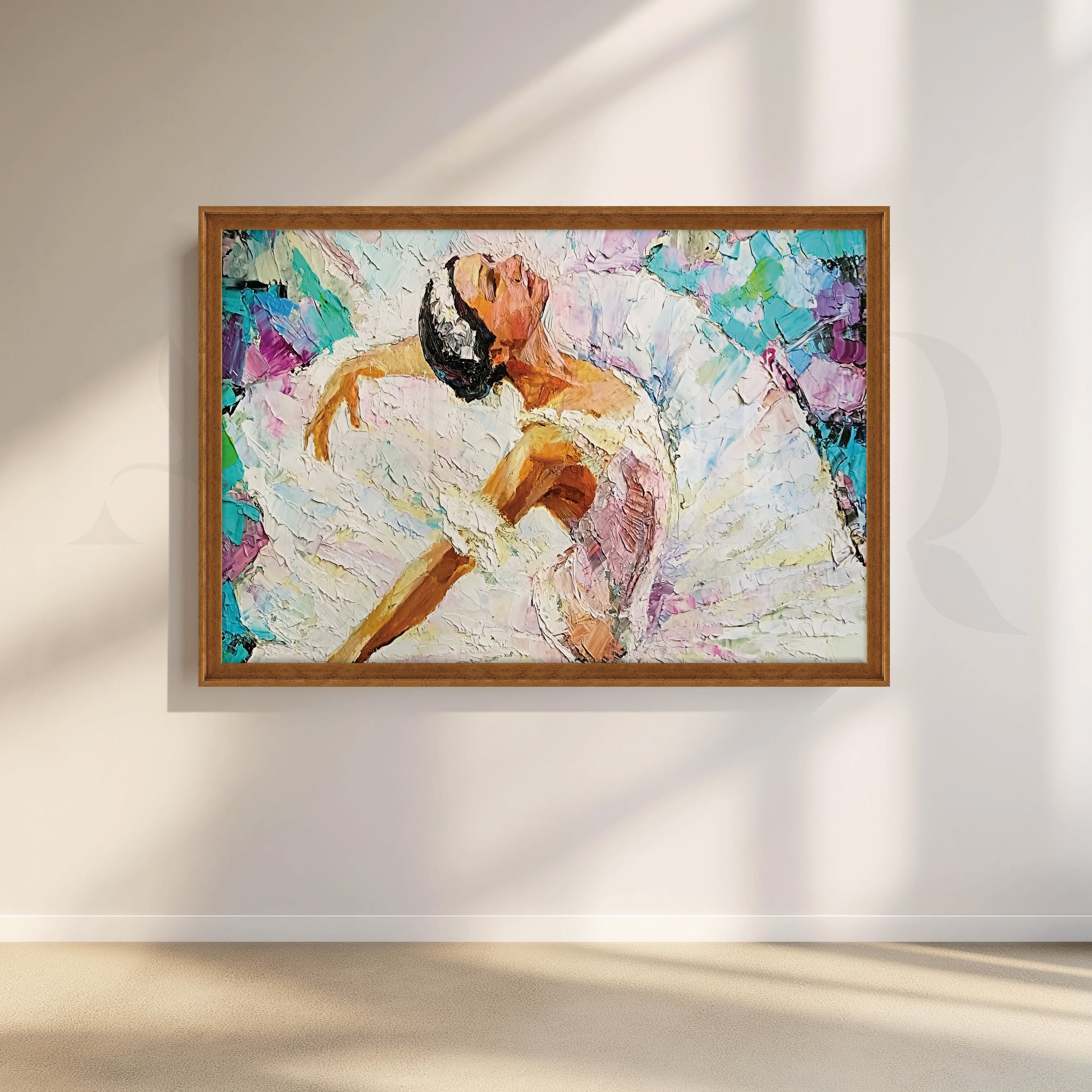 Bring the glamor of ballet into your home with this stunning framed painting of a ballerina in white. This high quality canvas print captures the grace and beauty of a ballerina in mid-performance. Soft colors and brush strokes create a dreamy and ethereal feel.