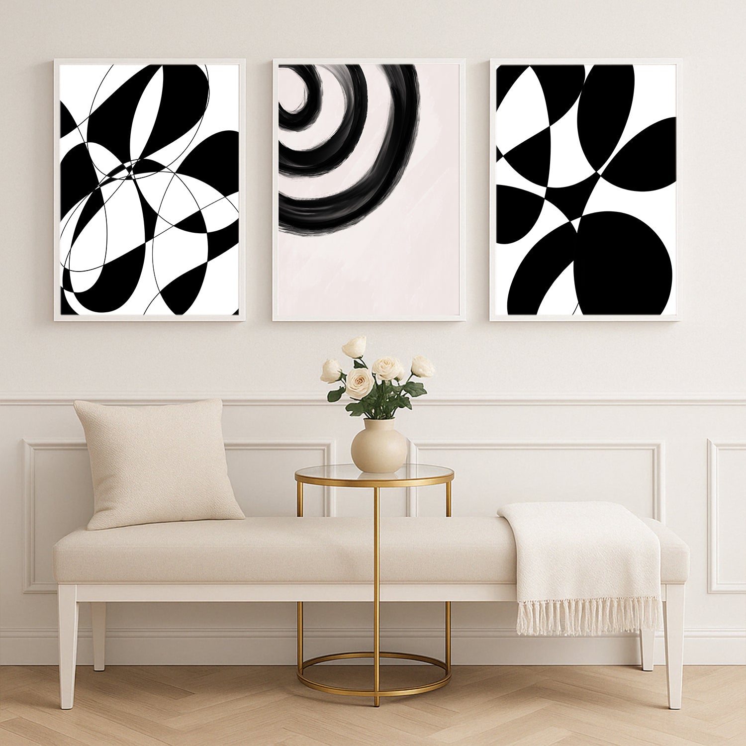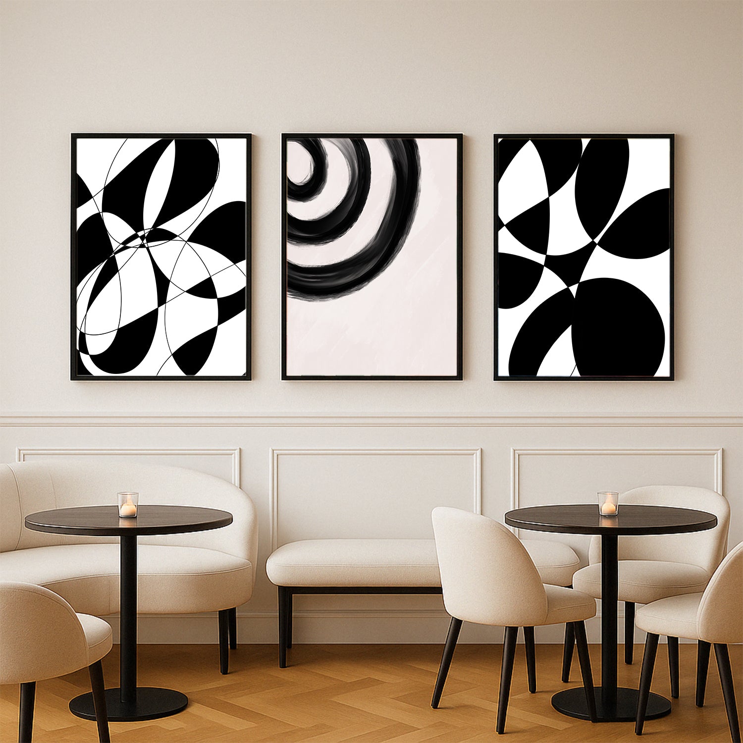 Black & White Rhythm Gallery Walls echo balance and motion through bold abstract shapes. This Gallery walls set adds a refined, musical flair—perfect for piano rooms, modern hallways, or creative studios.
