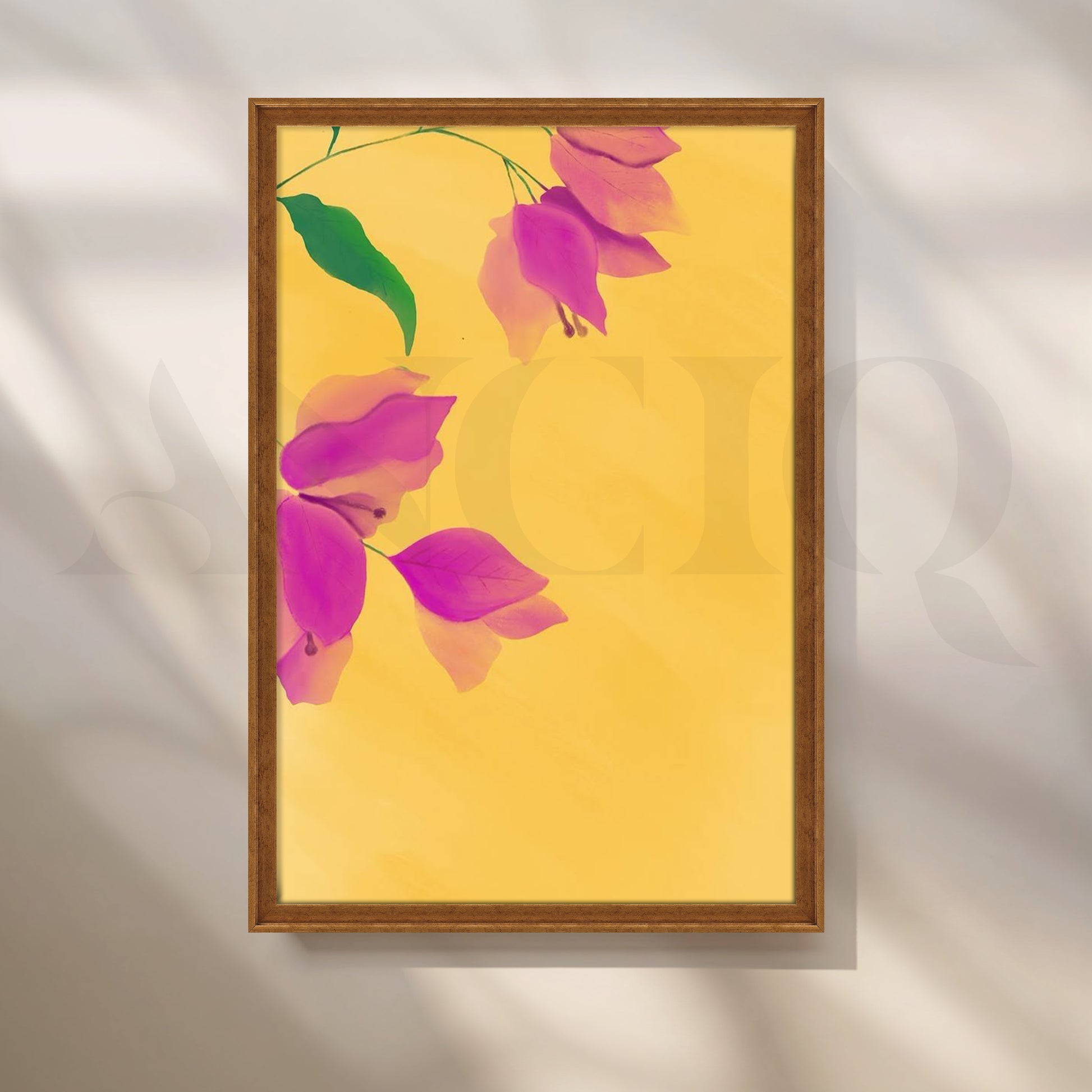 Anciq ‘Blush Bougainvillea’ Canvas Artwork blends soft yellow hues with vivid pink blooms, adding warmth and cheer to entryways, workspaces, or hallways. This floral canvas painting is ideal for modern décor seekers looking for vibrant botanical wall art.