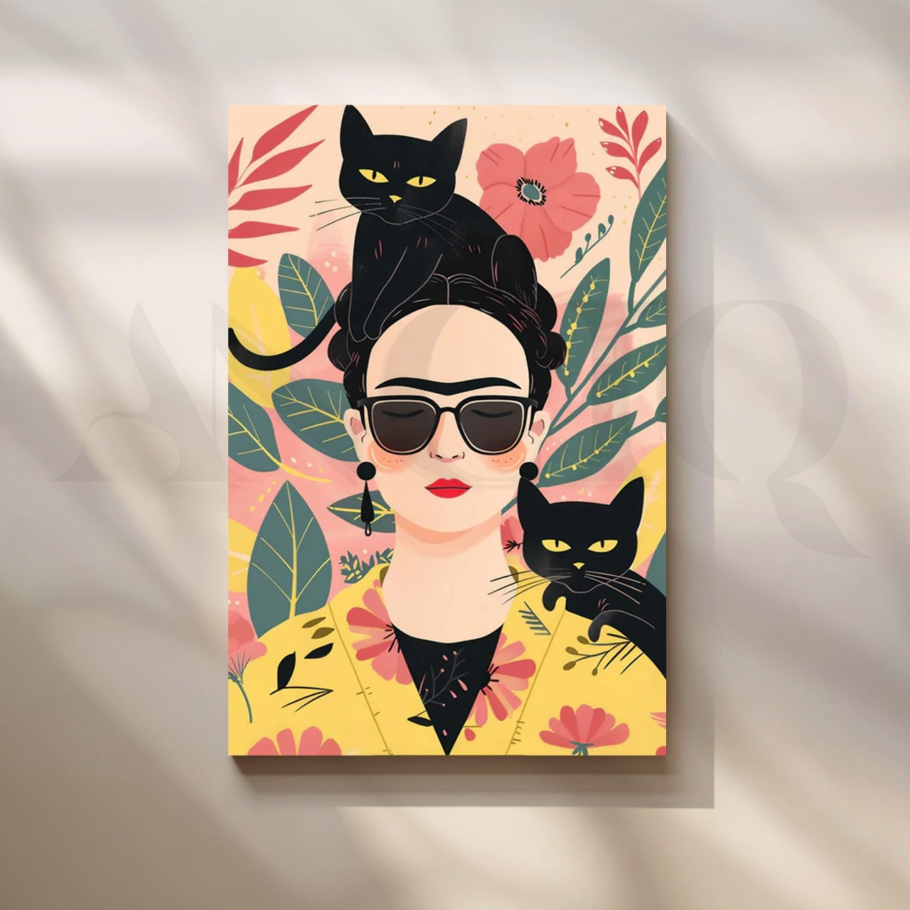 The Boho Charm Cat Portrait Wall Painting showcases a captivating fusion of vibrant flora, feline companions, and artistic flair. This unique artwork adds a playful yet sophisticated touch to your interiors, making it a must-have for eclectic decor enthusiasts.