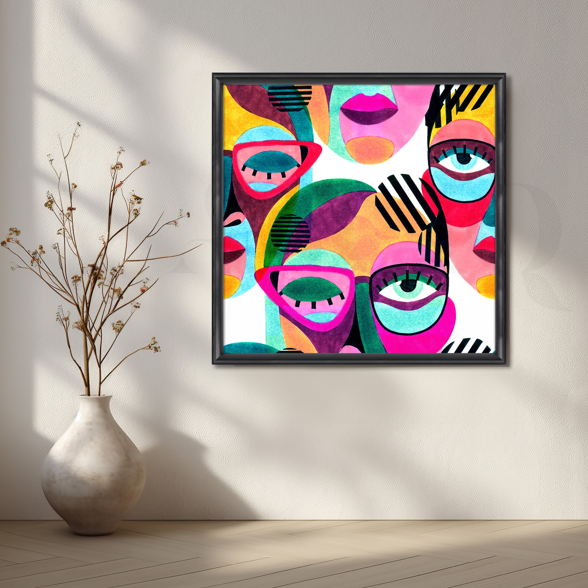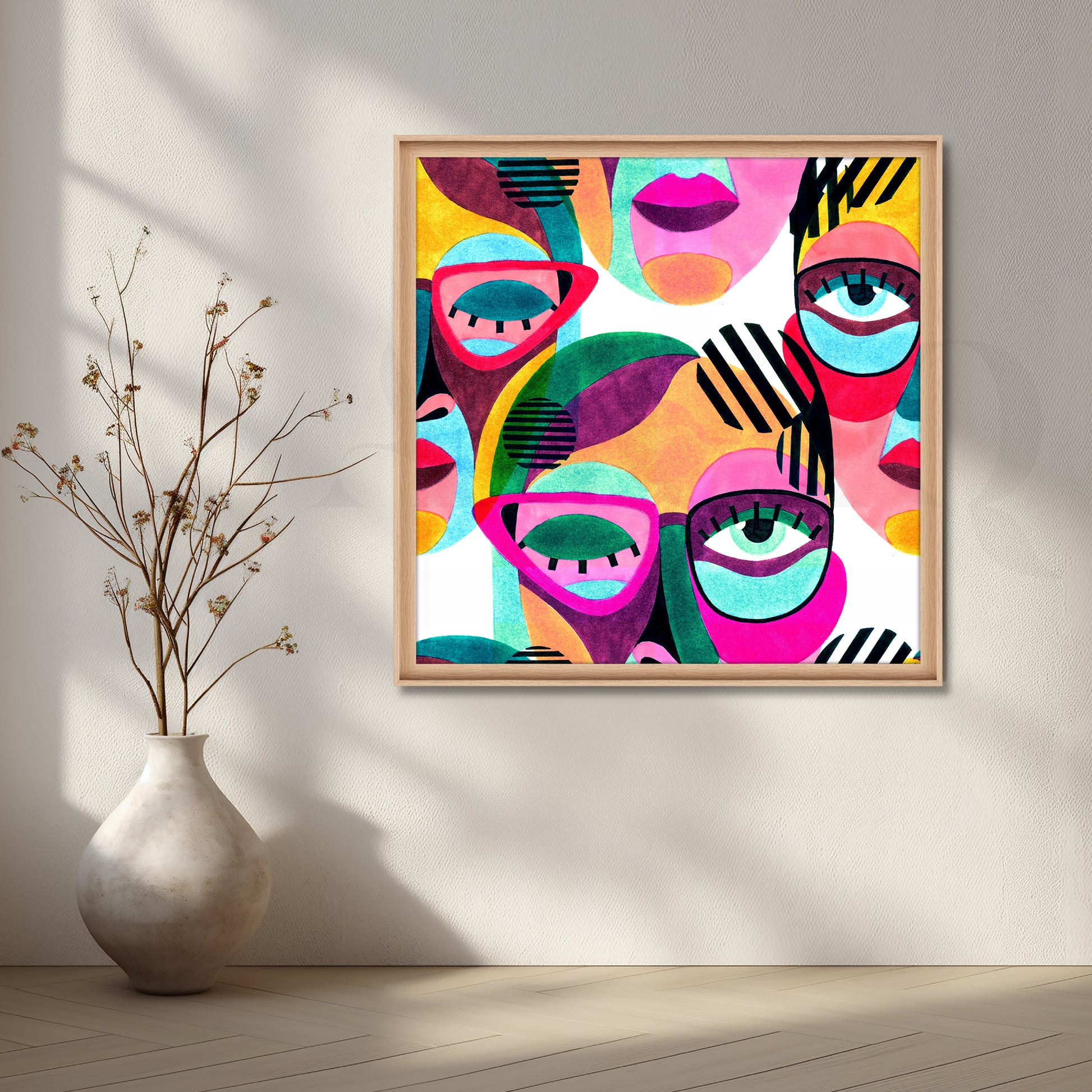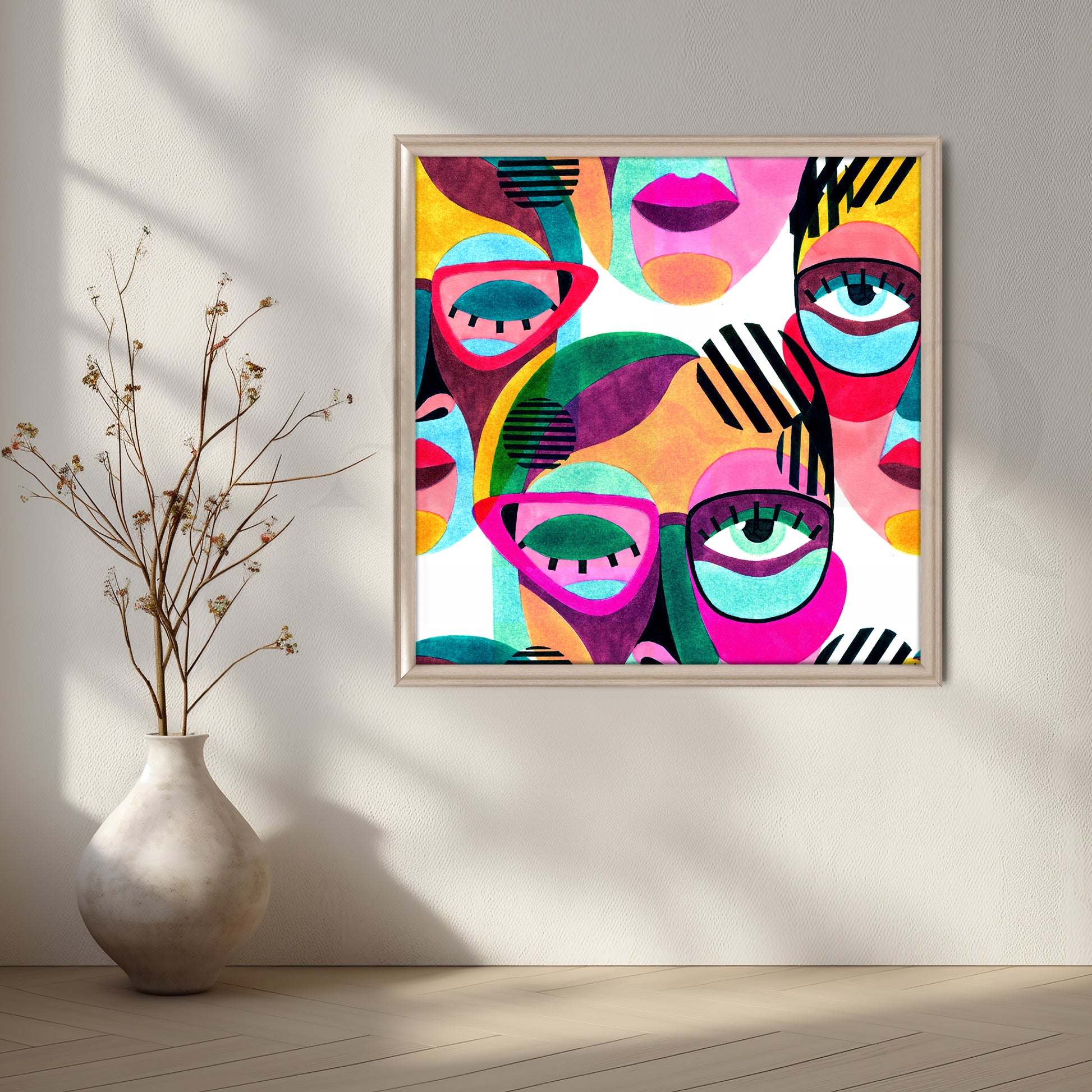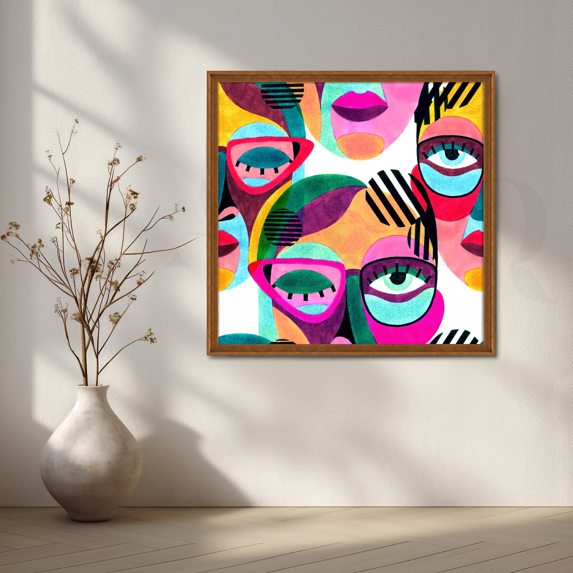 Bold and Vibrant Faces in an Abstract, Geometric Fusion