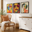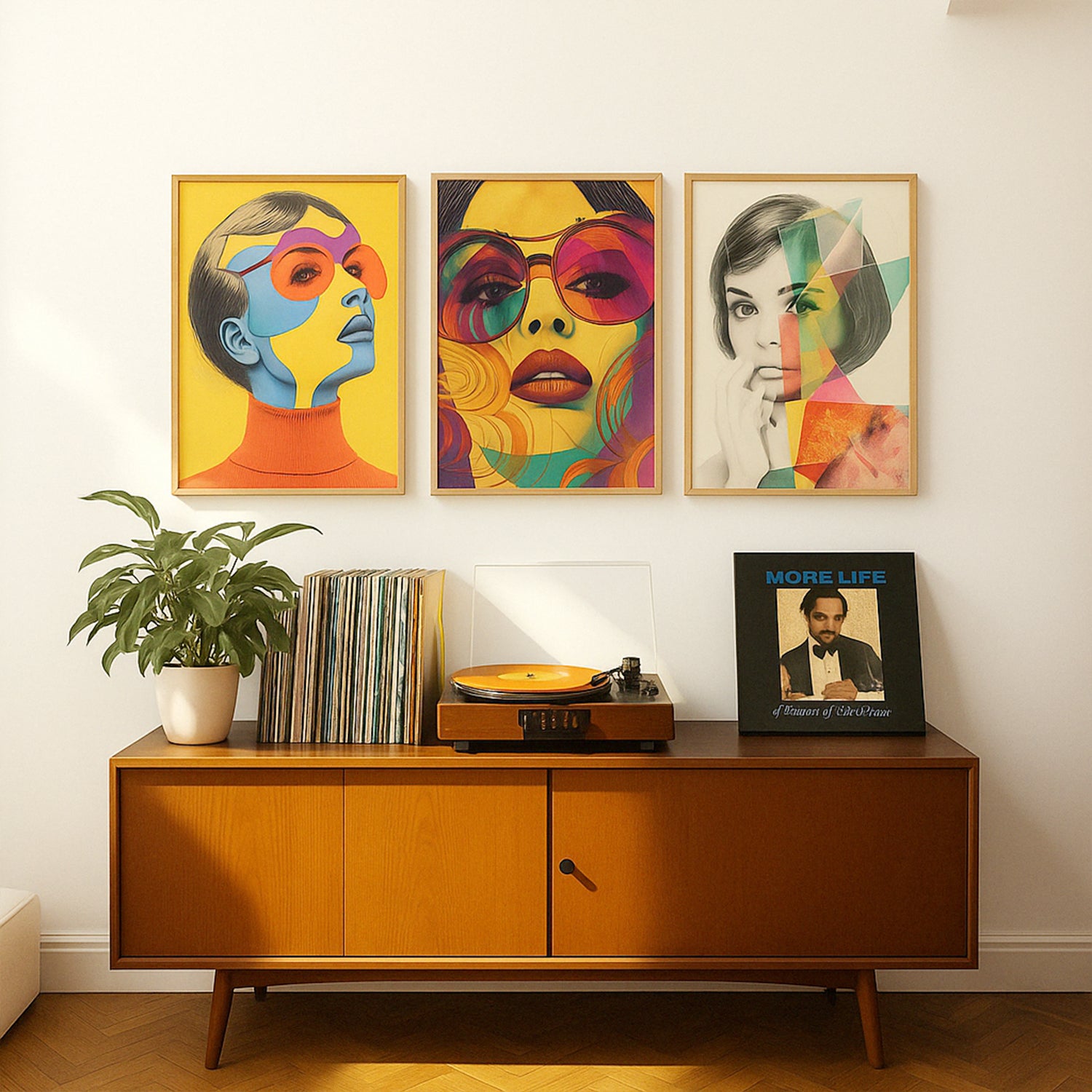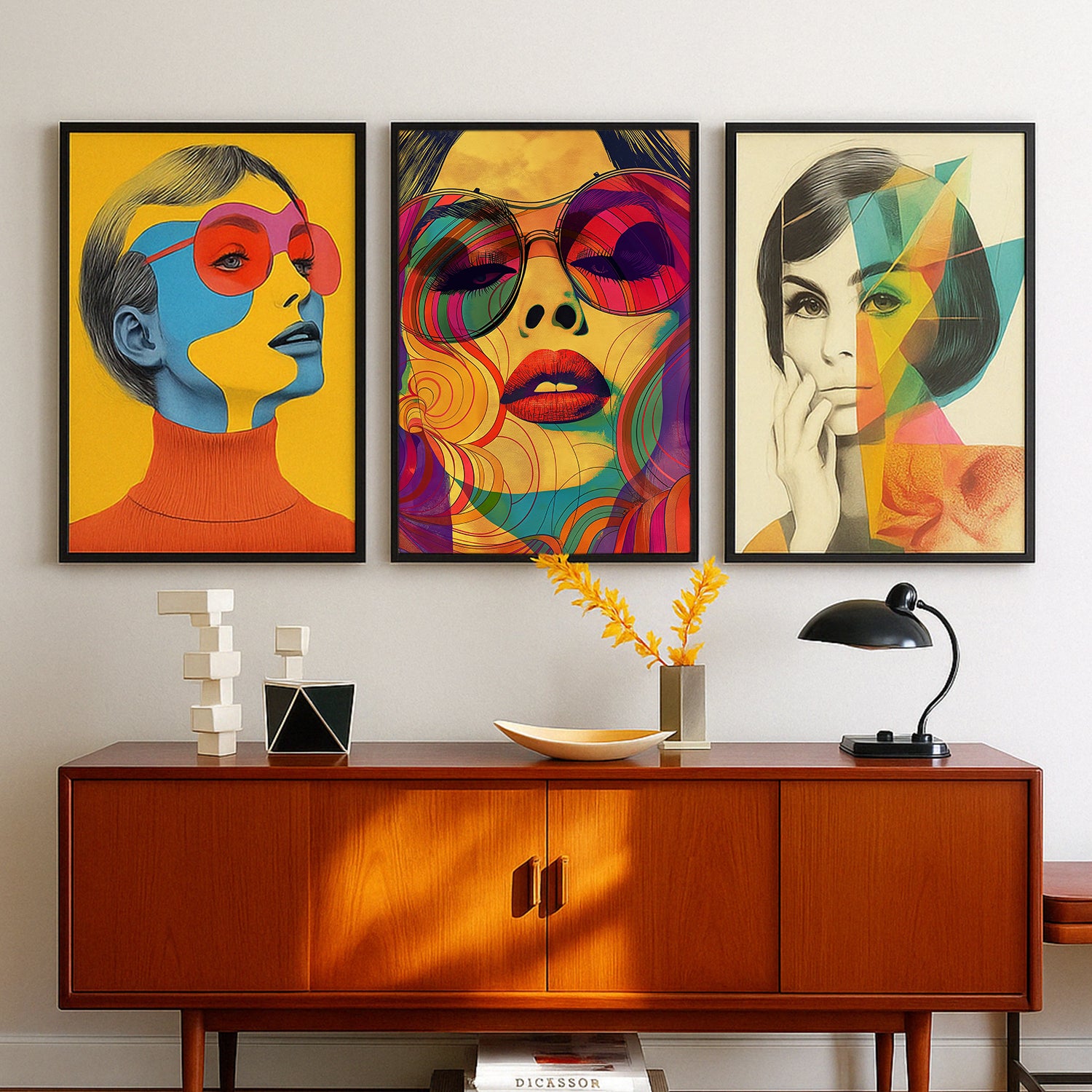 Bold Portrait Gallery Walls showcase striking modern faces with vibrant hues and abstract elements, creating a statement piece for your space. These gallery walls add artistic flair and personality, making them ideal for stylish bedrooms or contemporary interiors.