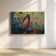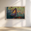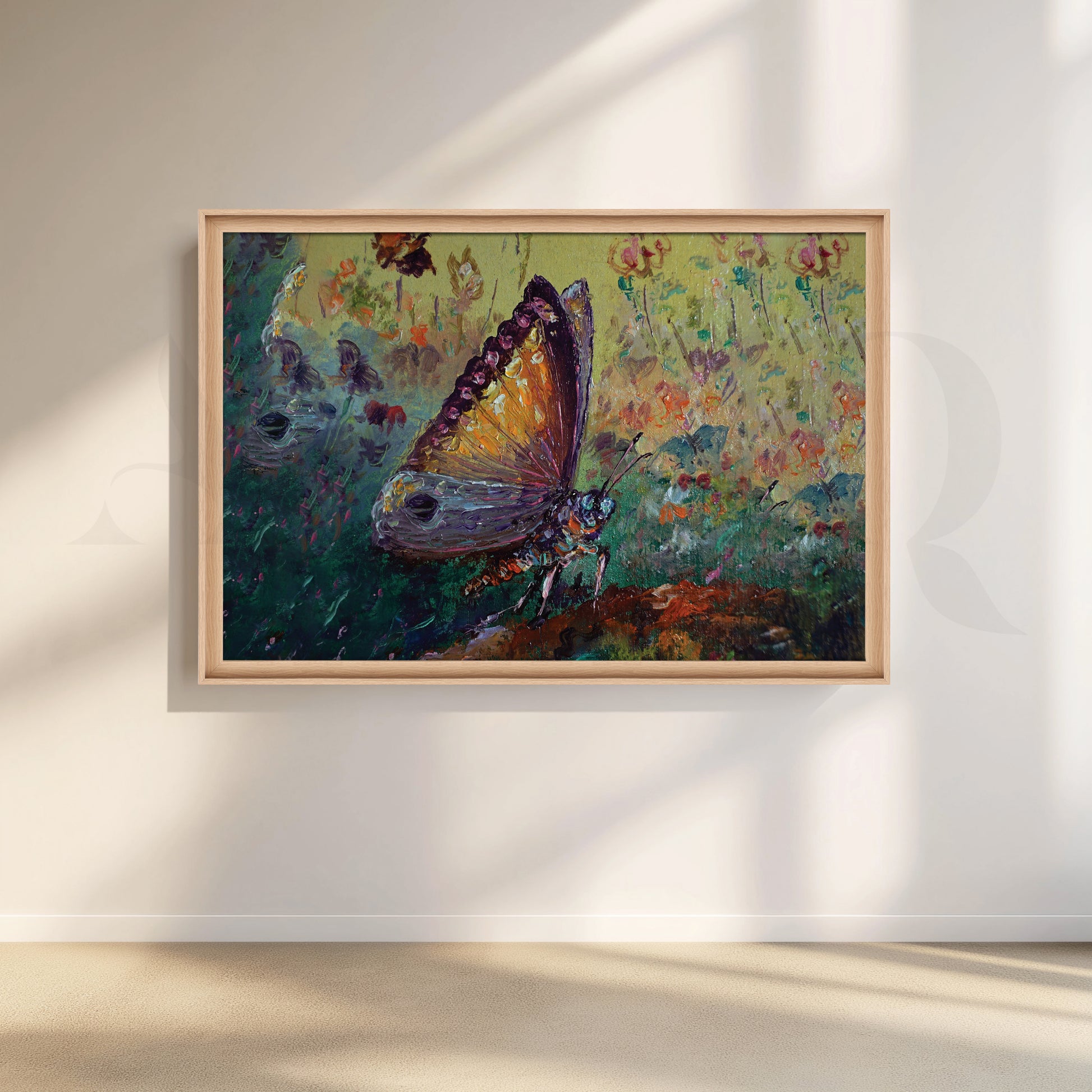 Breathe in the summer breeze with this captivating oil painting. A vibrant butterfly alights on a wildflower, its wings a kaleidoscope of color against a backdrop of lush greenery. This piece injects a touch of whimsy and the beauty of nature into any space.