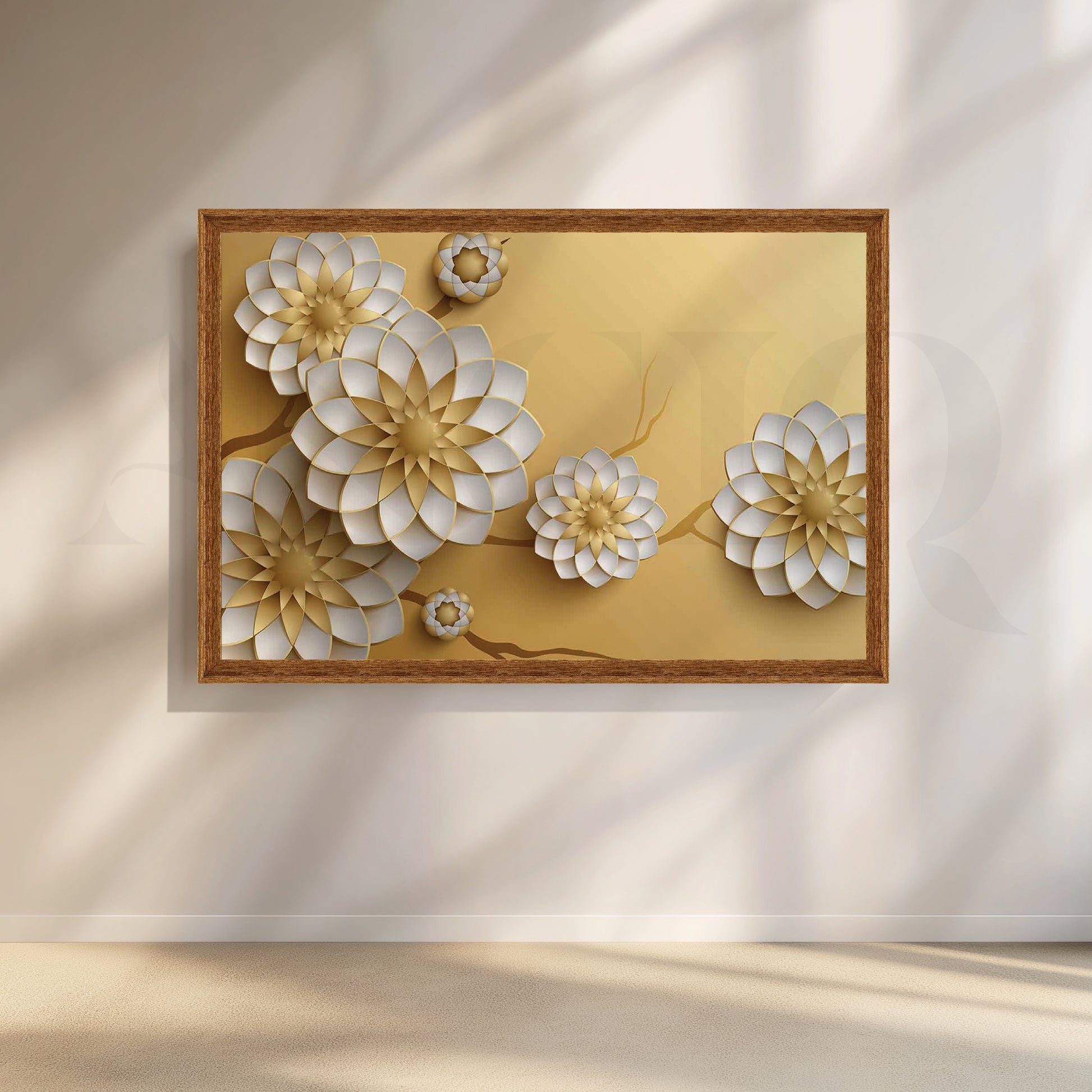 Breathe life into your space with this luminous floral. Bold, textured blooms dance against a shimmering gold backdrop, creating a captivating focal point. Printed on canvas, this piece brings a touch of elegance to any room.