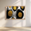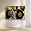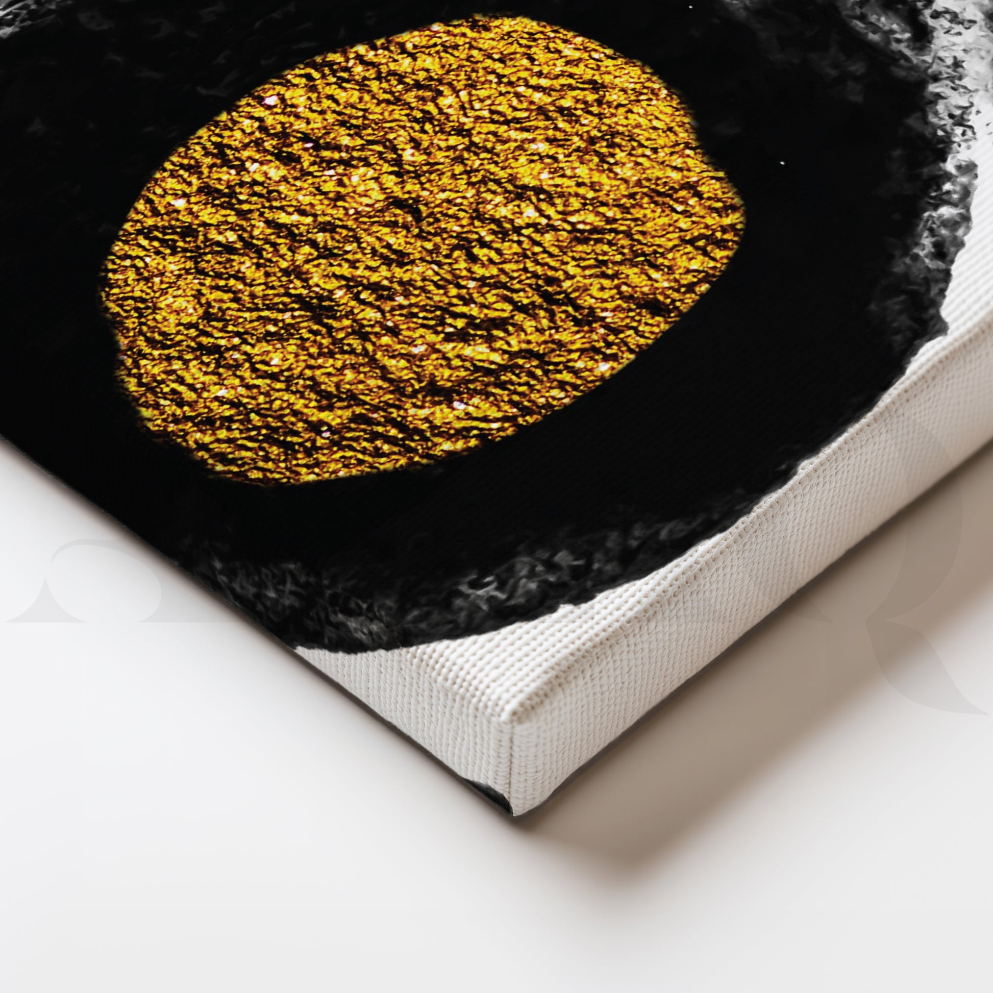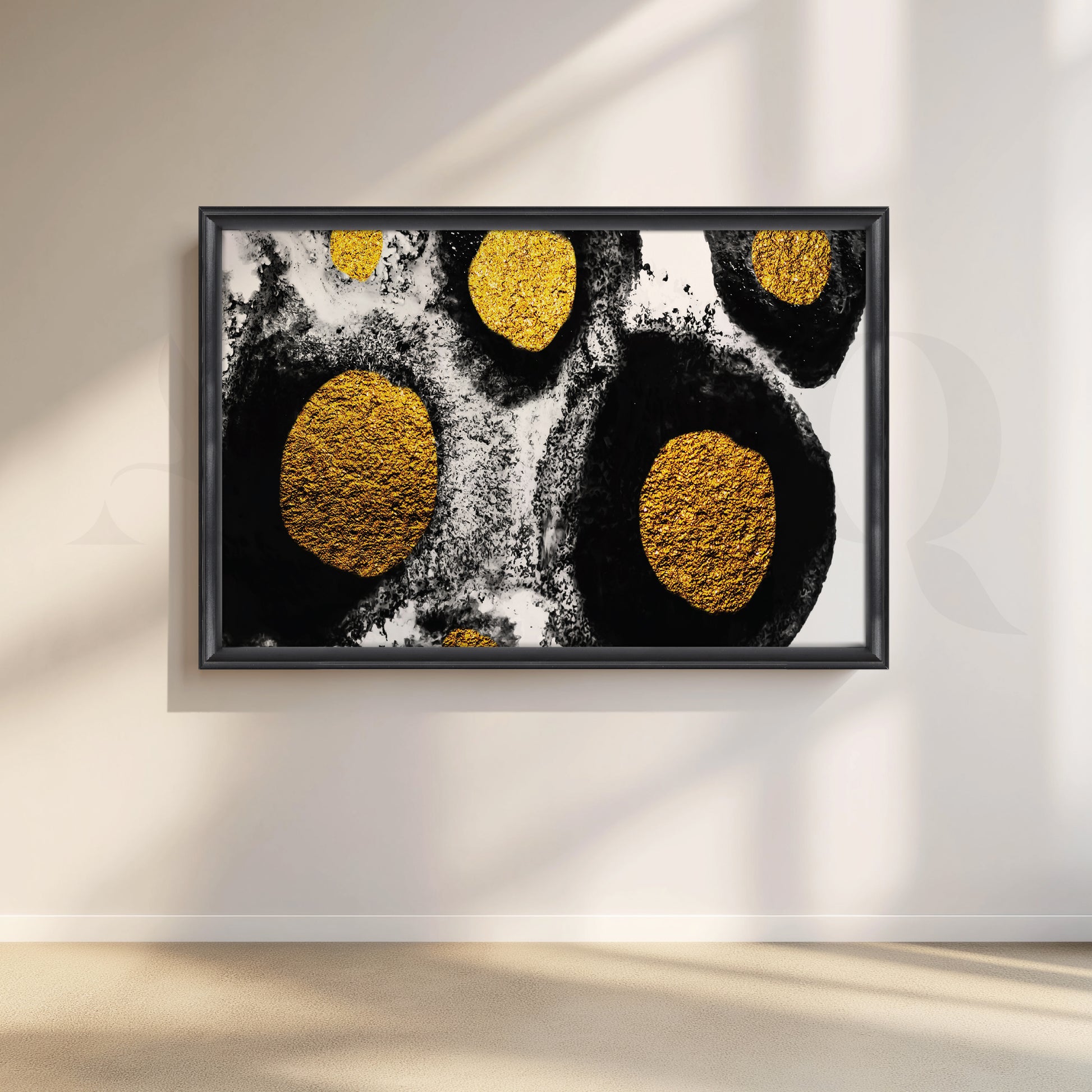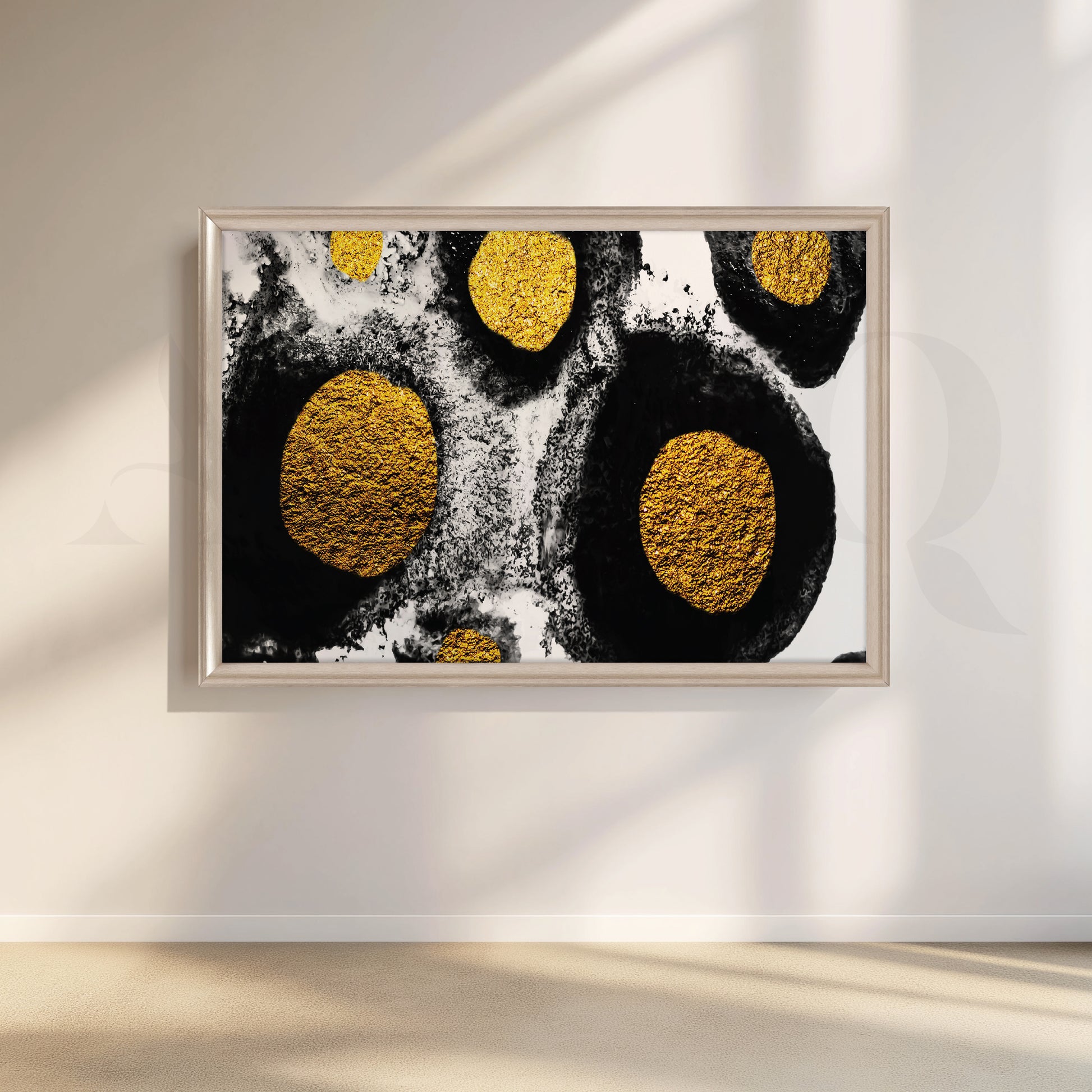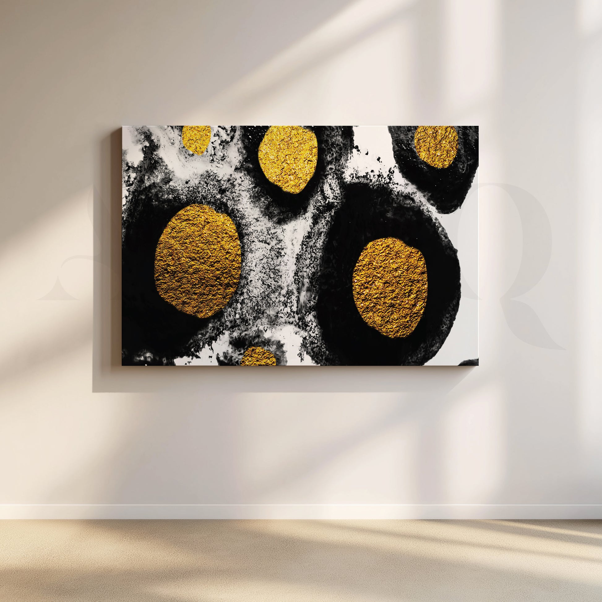 This circular canvas wall painting is a beautiful and unique piece of art that features a luxurious black and gold abstract design. The hand-painted gold accents add a touch of elegance, while the black brushstrokes create a sense of movement and drama. This painting is sure to make a statement in any home.