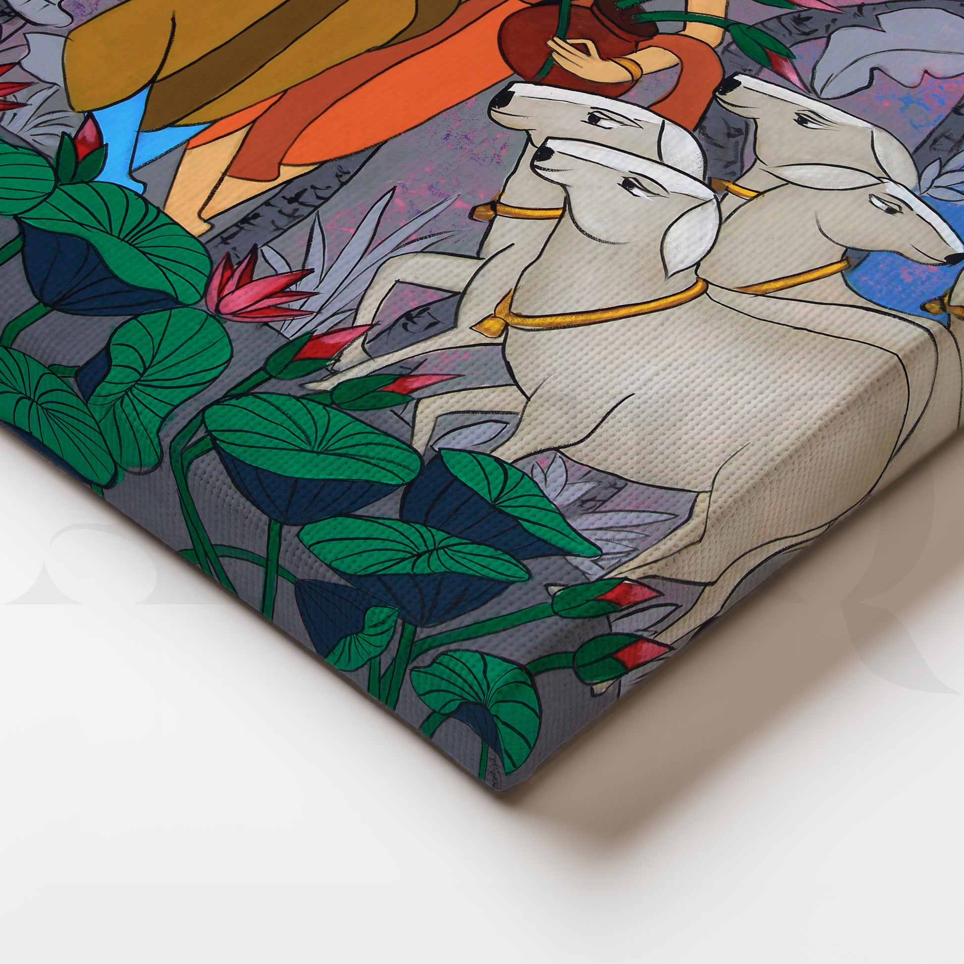 - The artist's journey into art began at an early age, driven by a deep fascination with how paintings are created. Born in Hubbali, Karnataka, and raised in Surat, Gujarat, they pursued formal education in art, earning a Drawing Teacher Diploma in 2009, followed by a B.F.A. from Shivaji University and an M.F.A. in 2018. Their artistic style blends traditional and contemporary elements, drawing inspiration from the works of Raja Ravi Varma, particularly his portrayal of Indian culture and mythology. The artist’s work often centers on rural life, celebrating the beauty of nature and everyday experiences. With a restricted palette of seven vibrant colors, they employ bold, sweeping brushstrokes to bring their visions to life. Art is a personal expression of emotions, cultural pride, and lived experiences. Embracing the digital age, the artist sees the internet as a powerful tool for reaching global audiences and sharing their art, deeply rooted in Indian traditions.