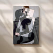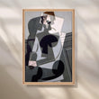 A sophisticated cubist portrait rendered in layered greys and charcoal with refined angles and curves. Elevates minimalist or monochrome interiors. Keywords: cubist portrait canvas, modern abstract figurative, grey wall art, minimalist décor, gallery wall piece, contemporary living room artwork.