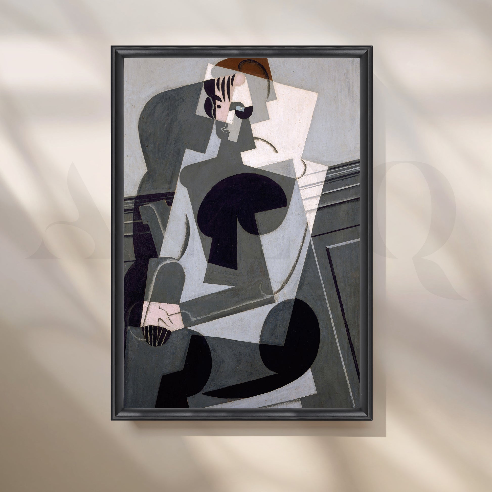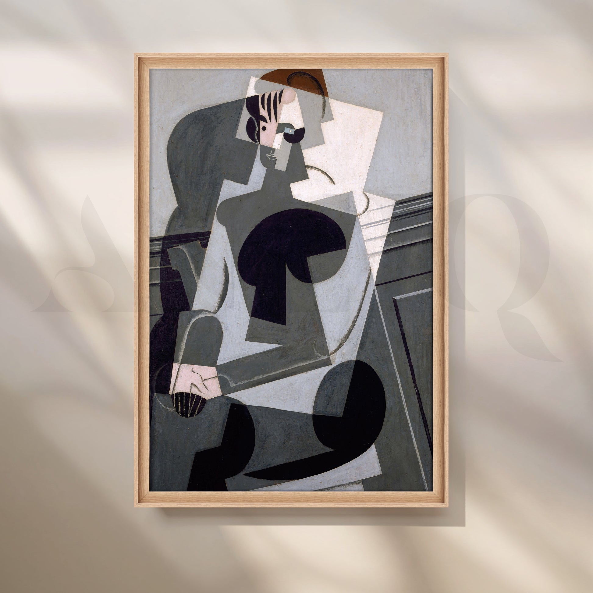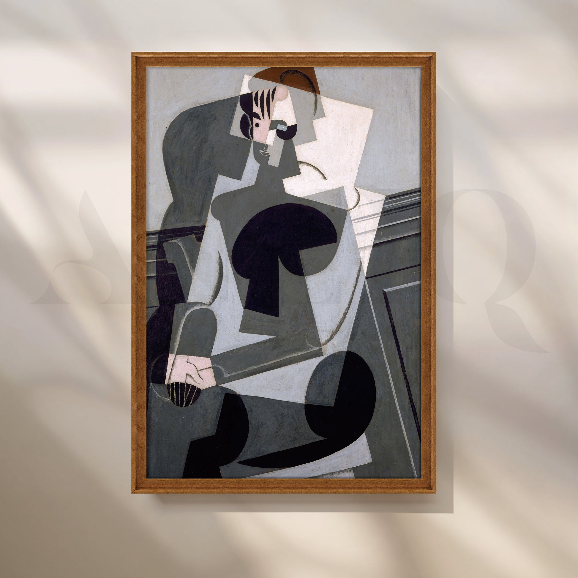 Cubist Woman in Grey Canvas Painting for Contemporary Living Room