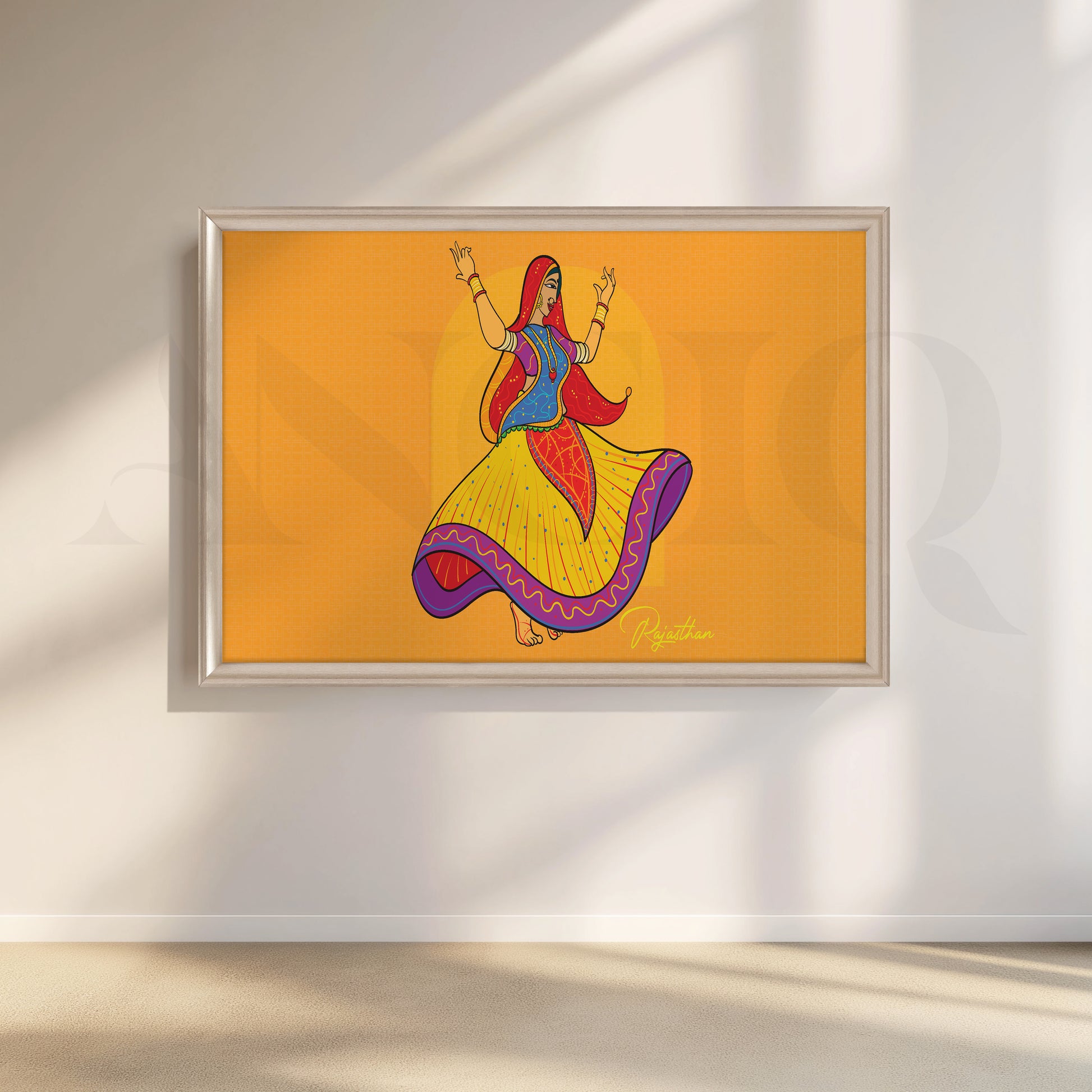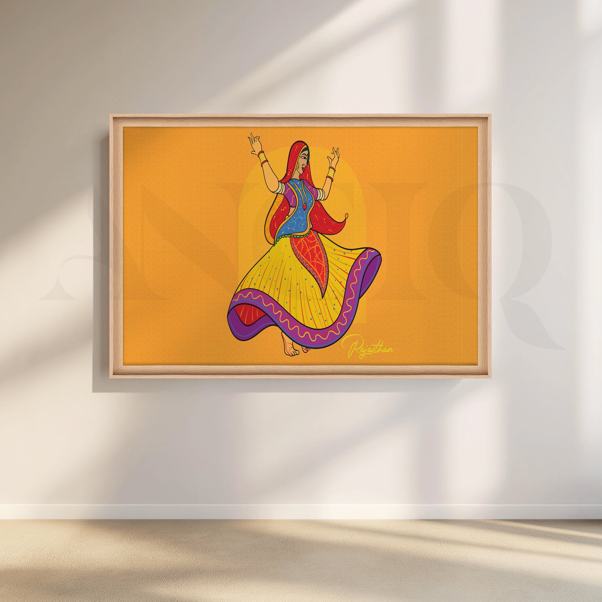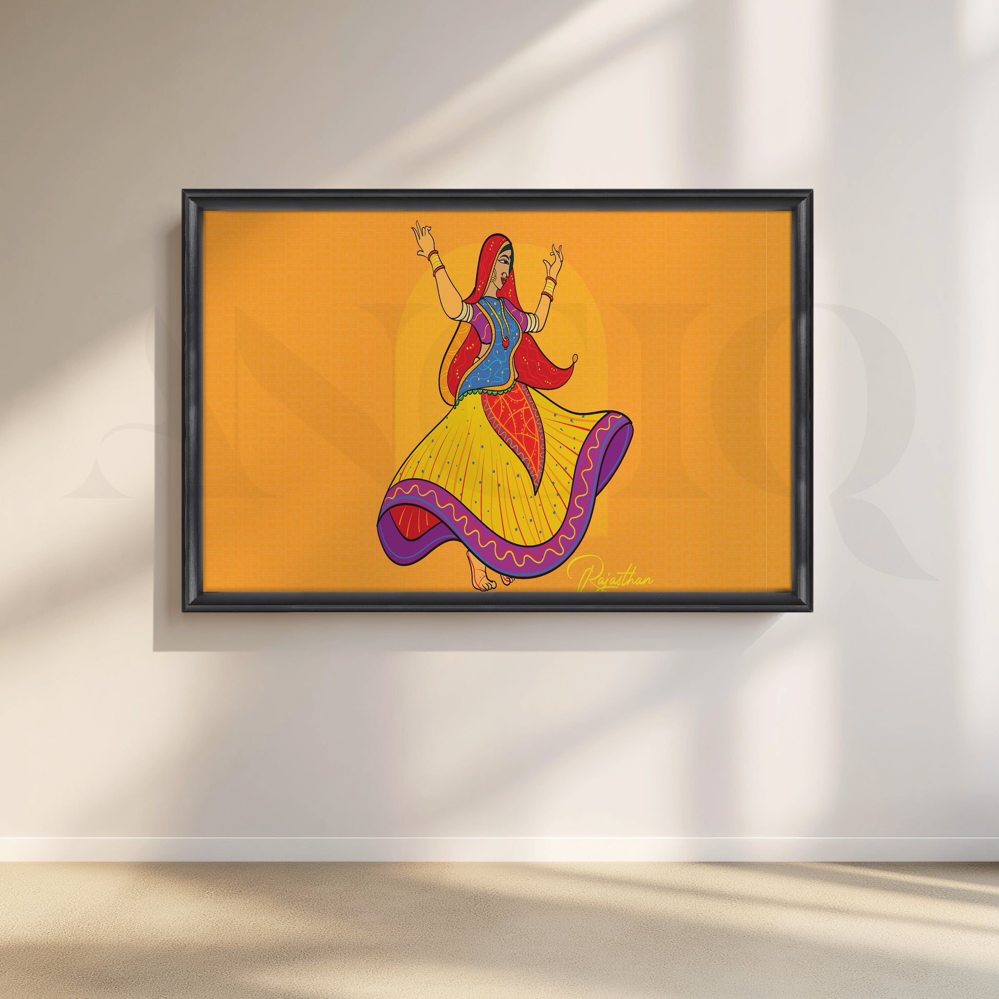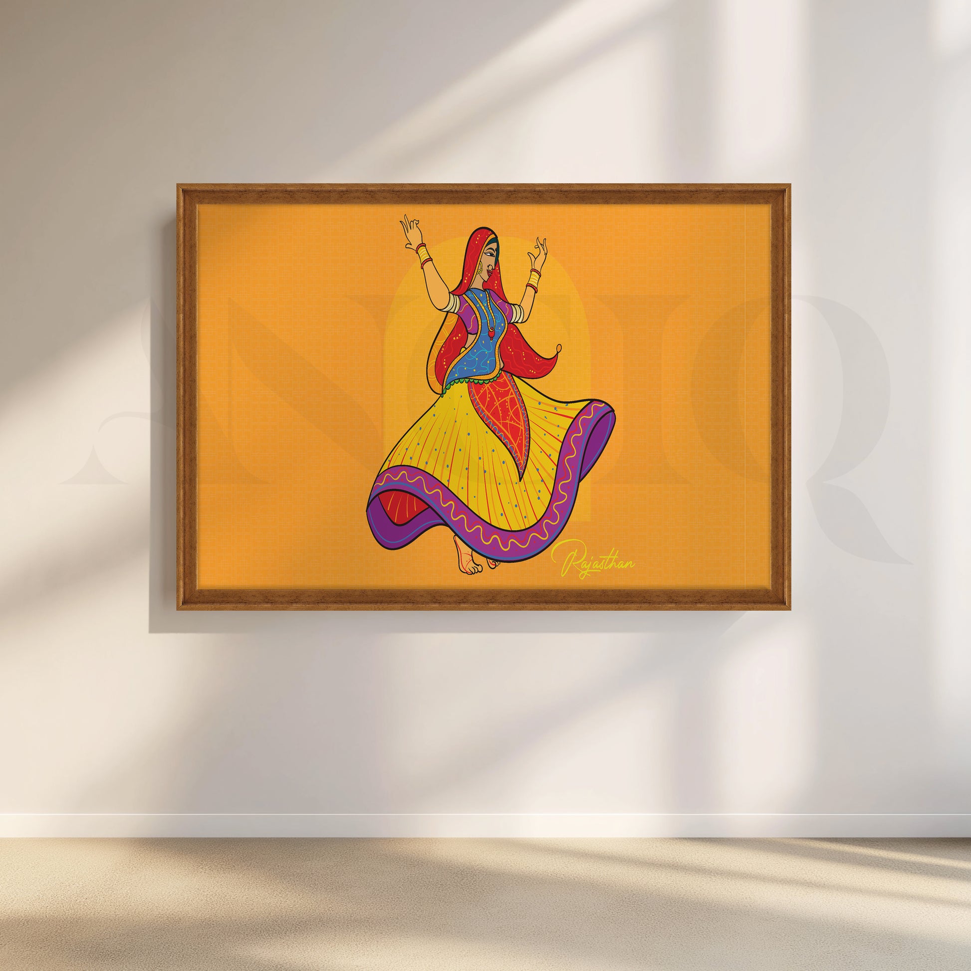 This vibrant canvas painting captures the energy and joy of traditional Rajasthani dance. The dancers’ colorful costume and dynamic pose leap off the canvas, transporting you to the center of the festival. It is the perfect art which gives classical touch to your home decor.