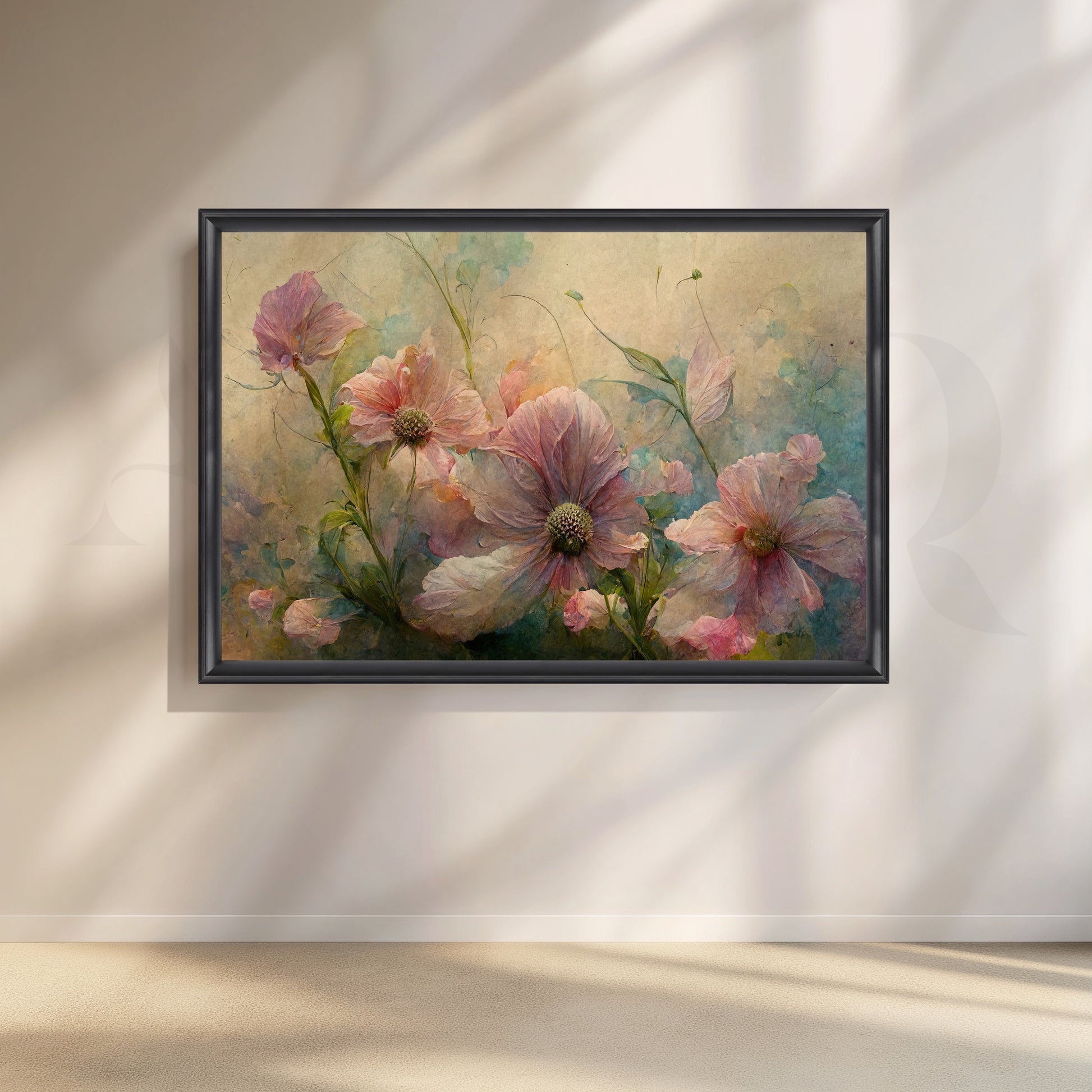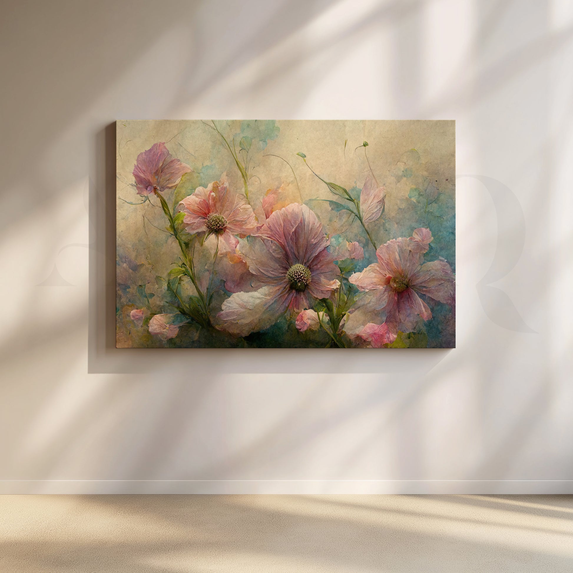 Embellish your white walls with this delicate floral painting that depicts the beauty, in soft pastels, of nature. This fine art print shows blooming flowers in calm and dreamlike harmony to embellish any space with a feel of peace. Make every room restful and stylish by celebrating an enduring beauty in nature through that elegant timeless piece. Get yourself acquainted to the magic behind flower design now.