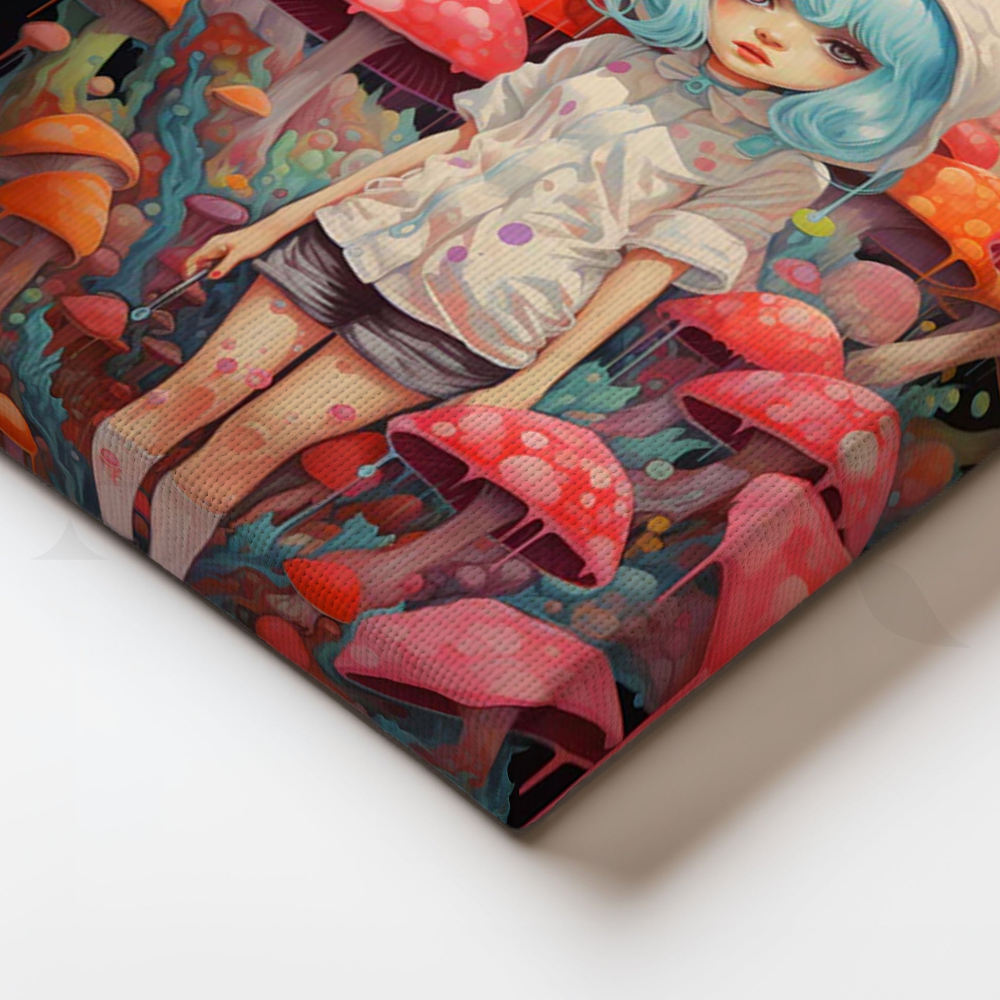 Mushroom Wonderland Girl Canvas Painting for Bedroom/Creative Studio